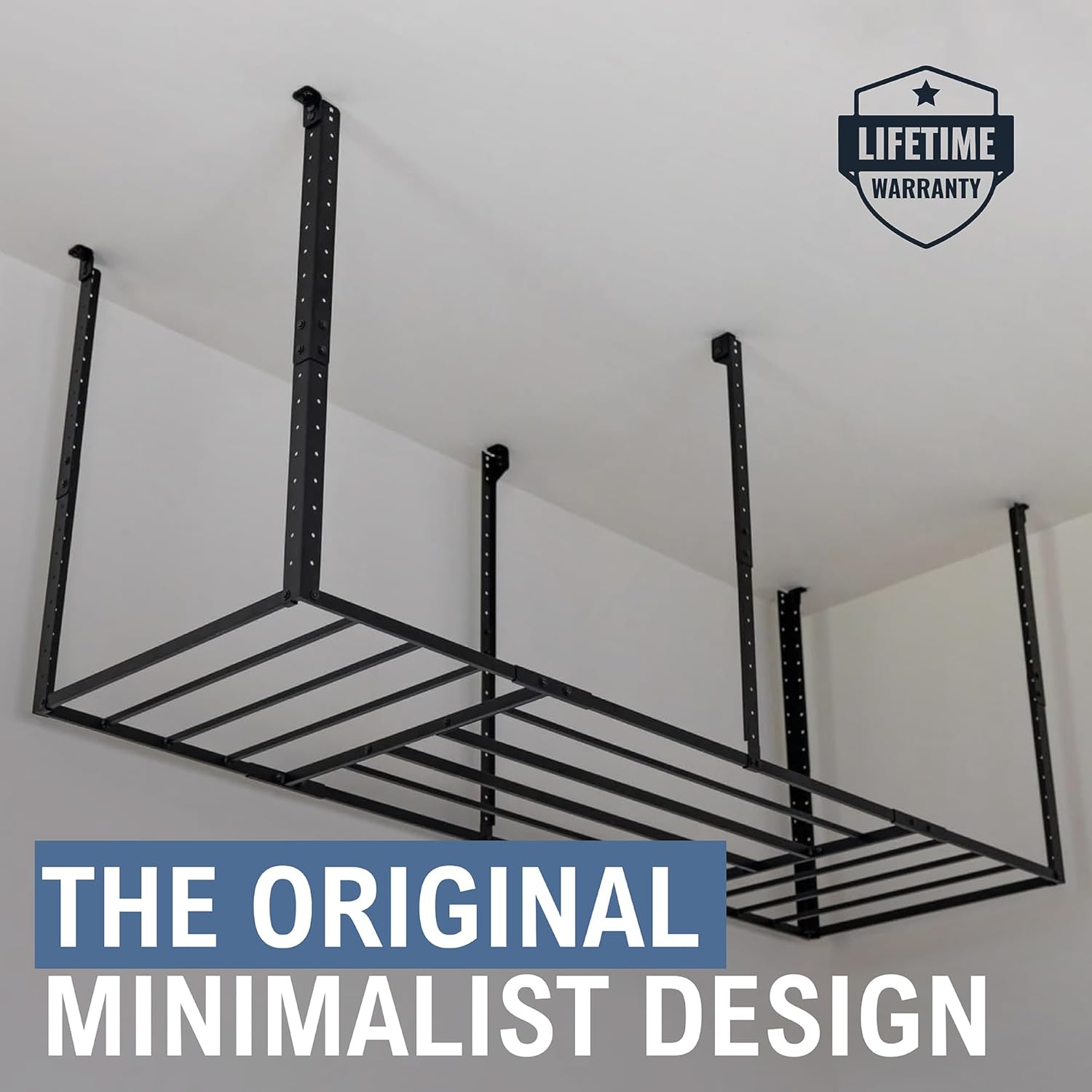 - Heavy Duty Steel: Solid alloy steel frame supports up to 700 lbs for secure garage overhead storage. Flat, sqaured tubing shelf provides more stability than traditional wire shelves.