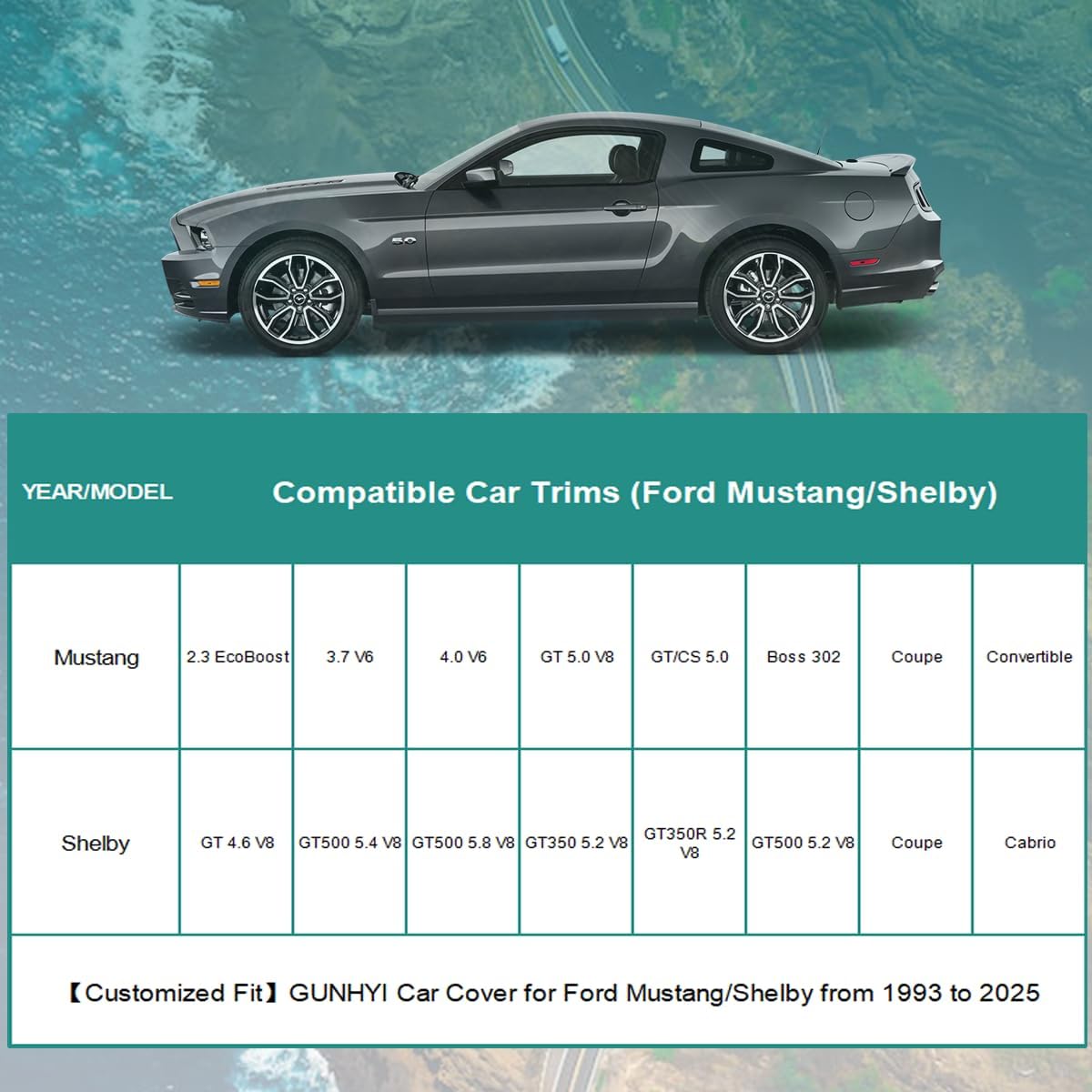 - ăCompatible withăThis Full Car Cover Custom fit for Ford Mustang/Shelby from 1964 to 2025. Comes with a microfiber towel that you can use to clean your car, because if there is sand on the surface of the car before use, it may damage the paint.
