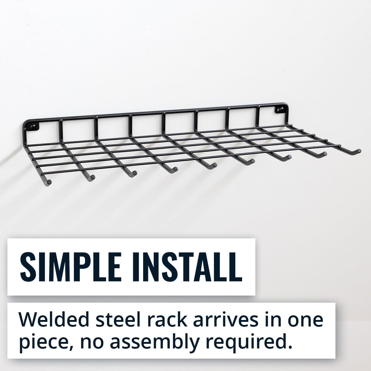 - Wall Mount Shelf β Solid steel wire shelf offers convenient wall storage for lawn and garden supplies, floral supplies, boxes, bags, and more. The rigid frame supports up to 40 lbs for a secure setup.
