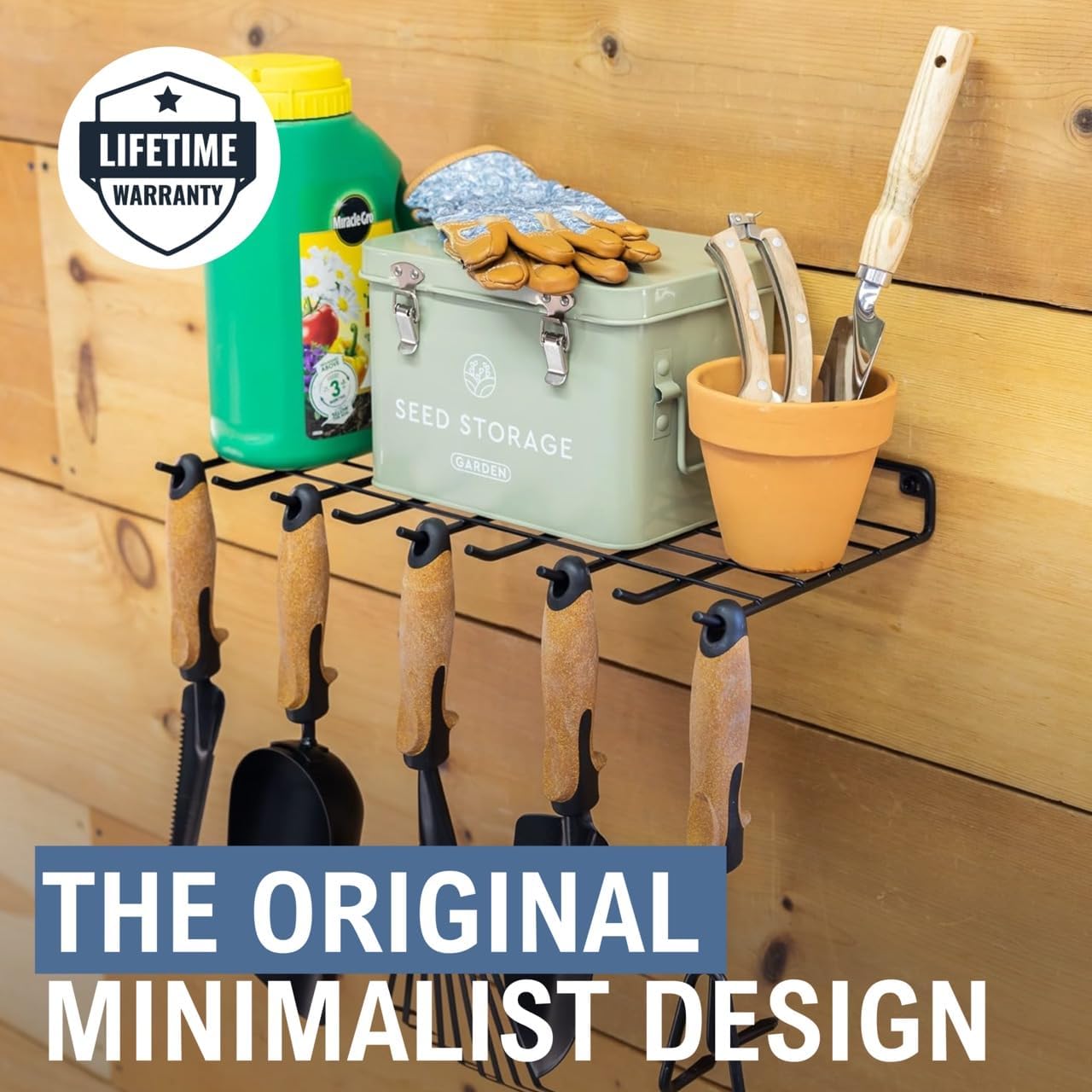 - Gardening Supplies Storage β The Afton Wall Organizer combines a rock-solid wall shelf and hanging hooks for storage of your outdoor tools and supplies. Perfect for your garden shed or garage.