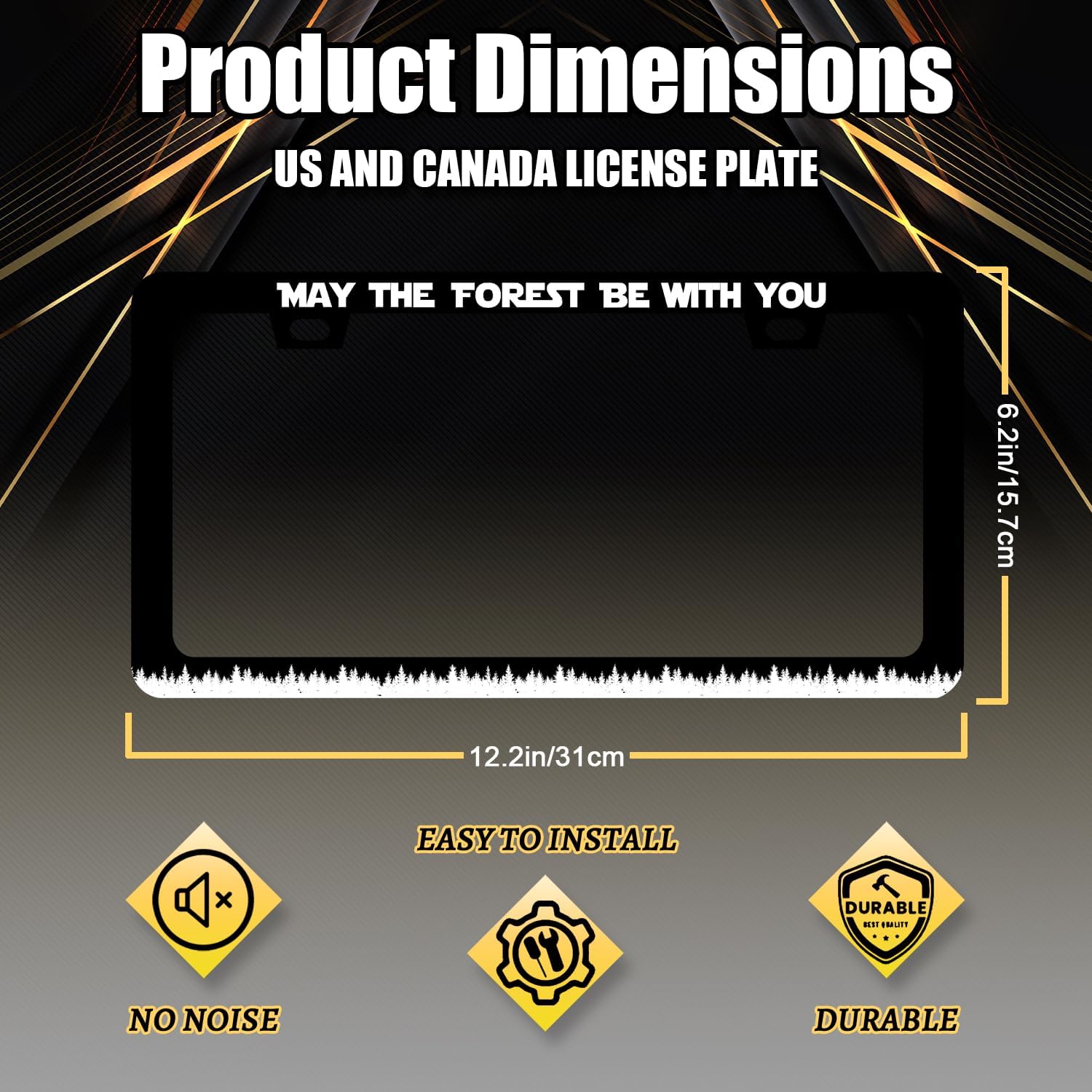 Funny License Plate Frame May The Forest Be with You License Plate Holder for Personalized Text Car Decorative Stainless Steel Forest License Plate Auto Part with Screws 12.2" x 6.2"