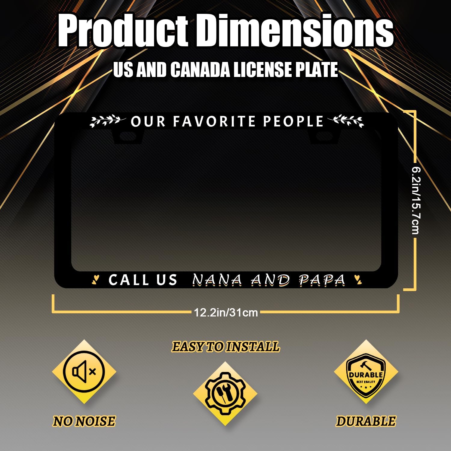 Our Favorite People Call Us Nana and Papa License Plate Frame Funny Text License Plate Frames Auto Accessory for Car Decorative Stainless Steel License Plate Holder with Screws 12.2" x 6.2"