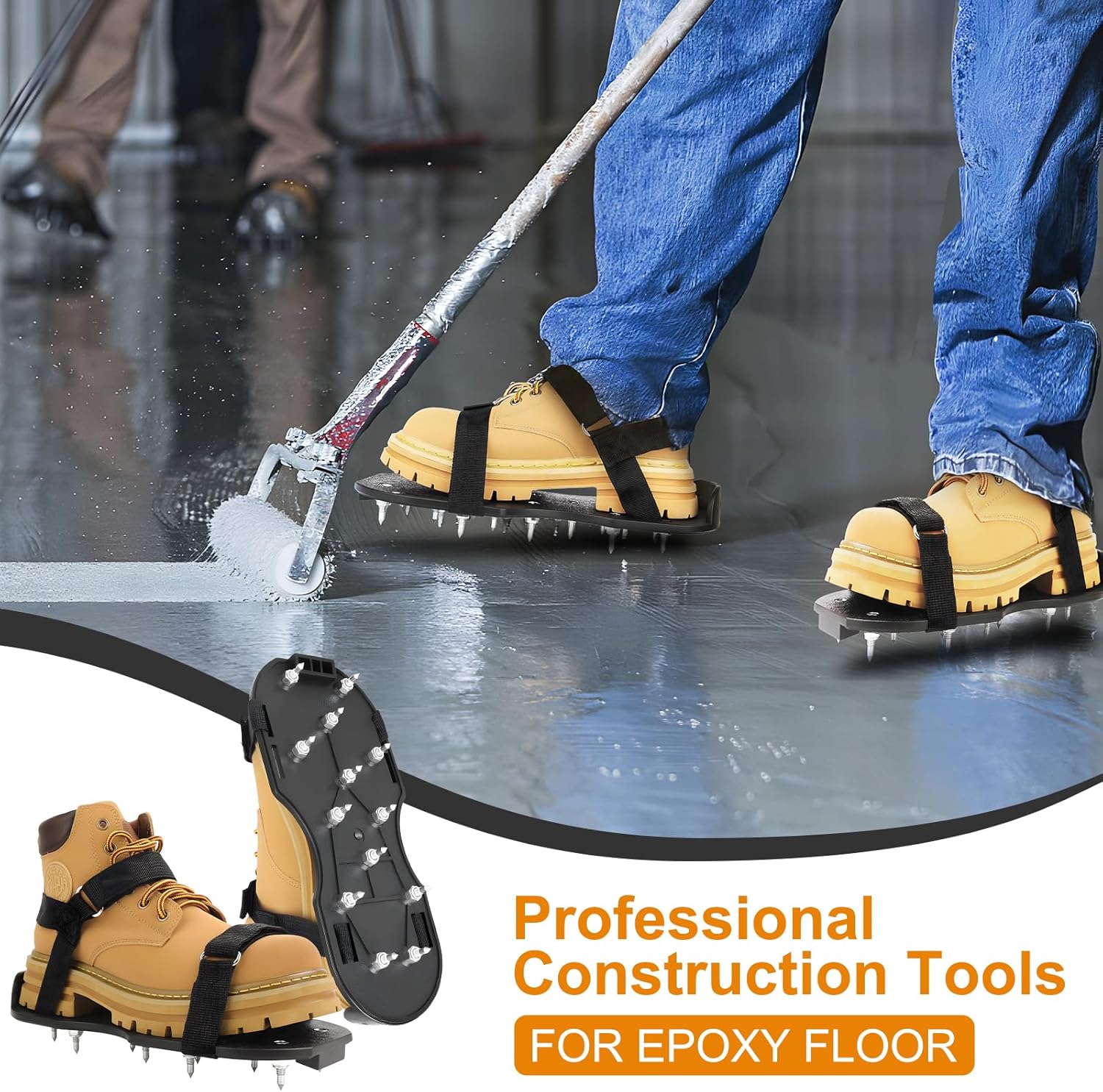 - Epoxy Spike Shoes: In the self-flowing flat paint construction, wearing epoxy resin nail shoes will return and stick back will not leave a trace, do not worry about footprints will ruin your design. You can do your job better.Epoxy nail shoes are a necessary tool for self-leveling, epoxy flooring and overlay construction.