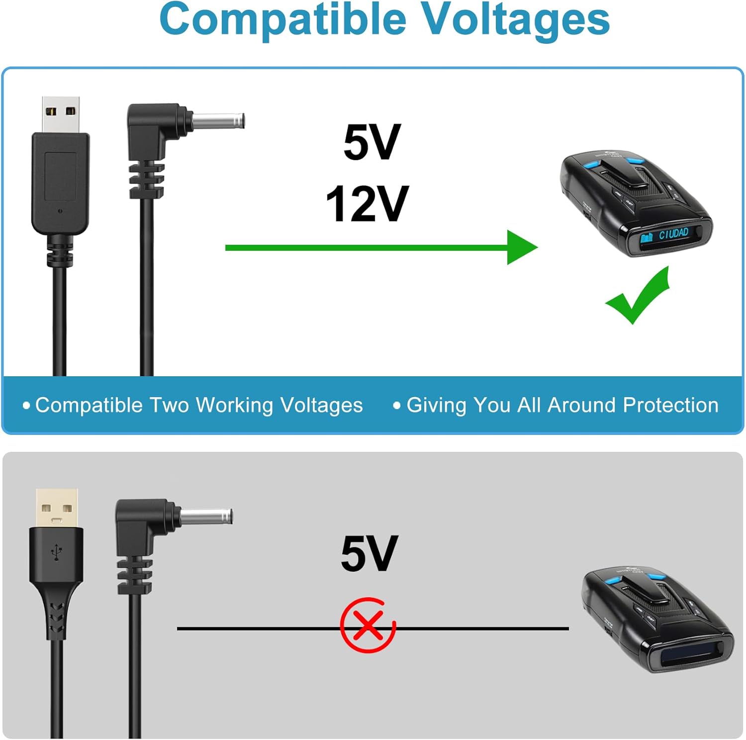- ✅High technology:Radar detector cable are designed with integrated molding at the USB A port and DC3.5 port,easy to plug and unplug,strong and durable,longer life.