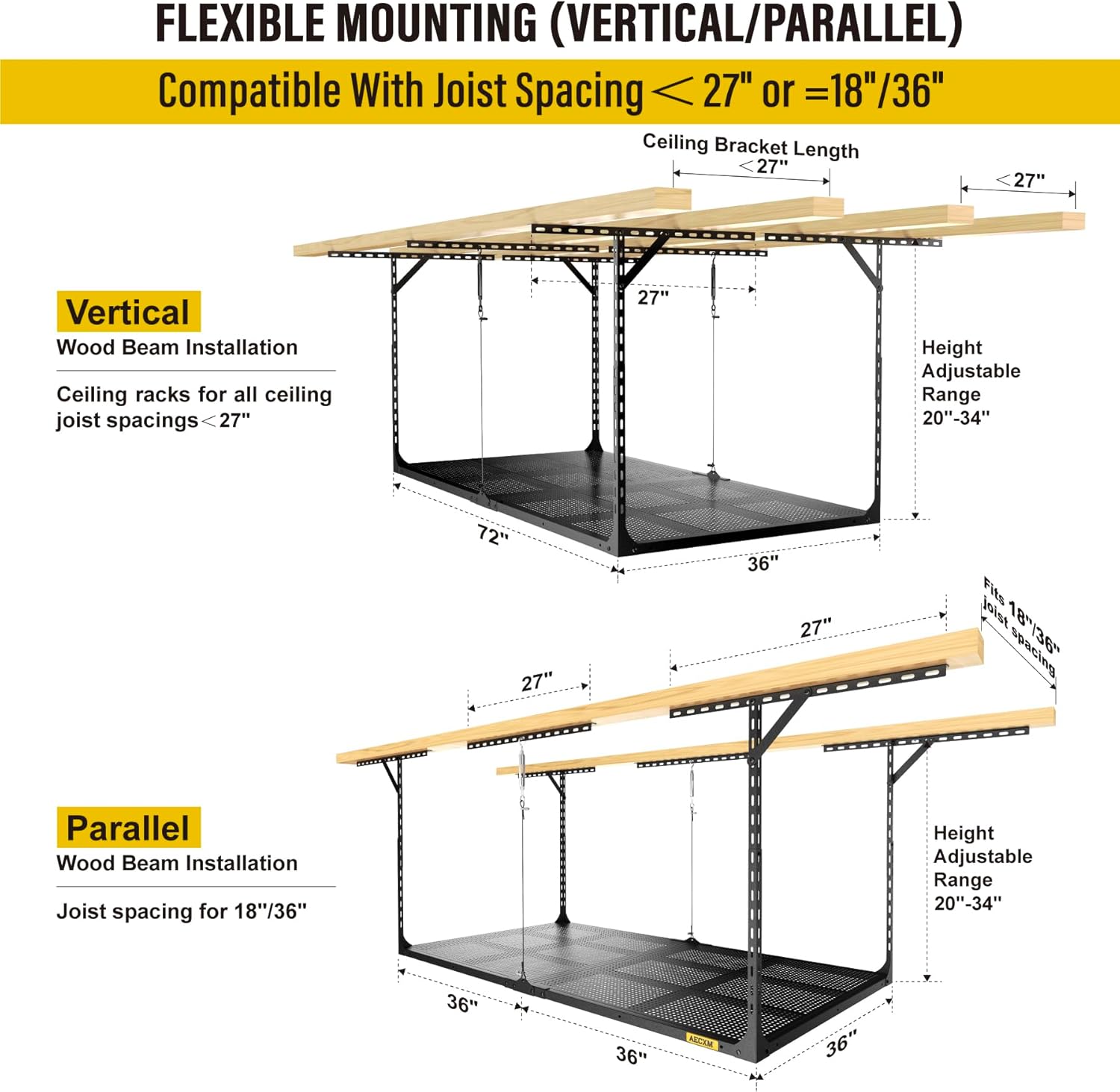 - SERVICE COMMITMENT: Our Overhead Garage Storage Rack include installation instructions and all accessories and screws, all hardware undergoes strict quality control and testing; AECXM strives to provide customers with a quality shopping experience, if you have any questions, please feel free to contact us!