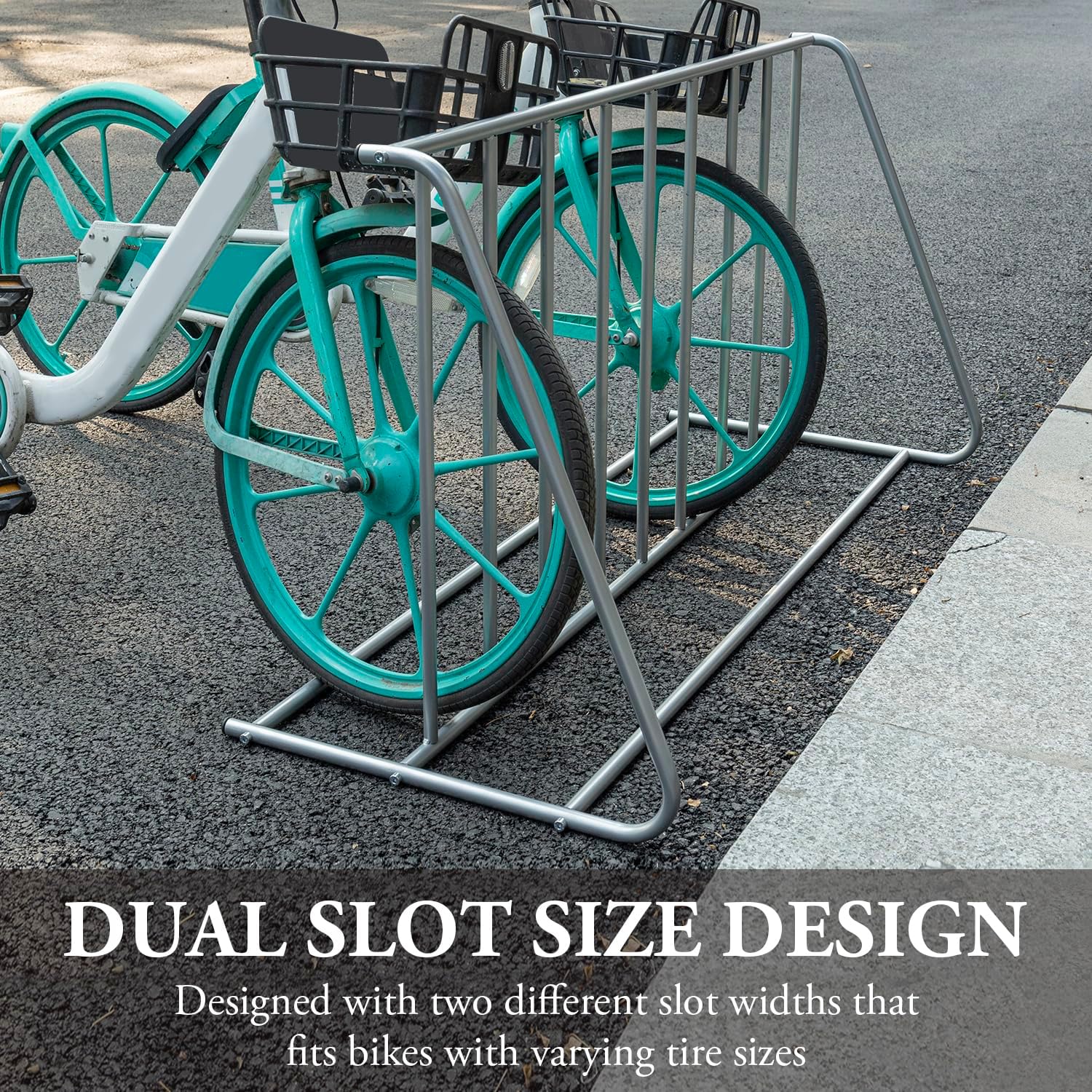 - 6-bicycle floor standing silver-toned metal holder provides dual-sided indoor or outdoor parking for bikes **Some assembly required**