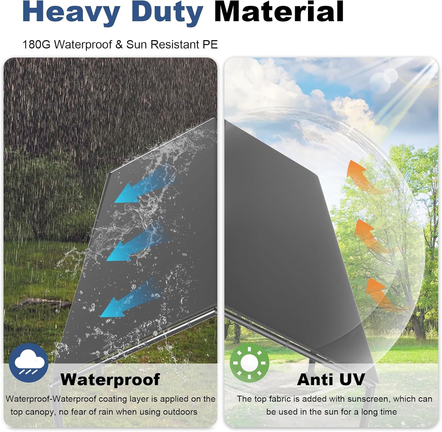 - 【More Durable Material】The cover of the carport is a little smaller than the frame so the bungee cords can pull tarp tight , like 2” gap on all sides ,so the snowy will not insane accumulation.The tarp cover of the car tent is fasten by elastic snap rather than cheap Velcro, which make the car port more durable and elegant.