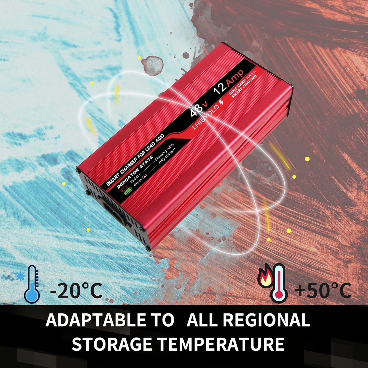 - 【Intelligent charging experience】: Equipped with a temperature sensor, this charger intelligently adjusts the charging process to ensure optimal performance and battery life. It effectively prevents overcharging and contributes to the health of your golf cart batteries.