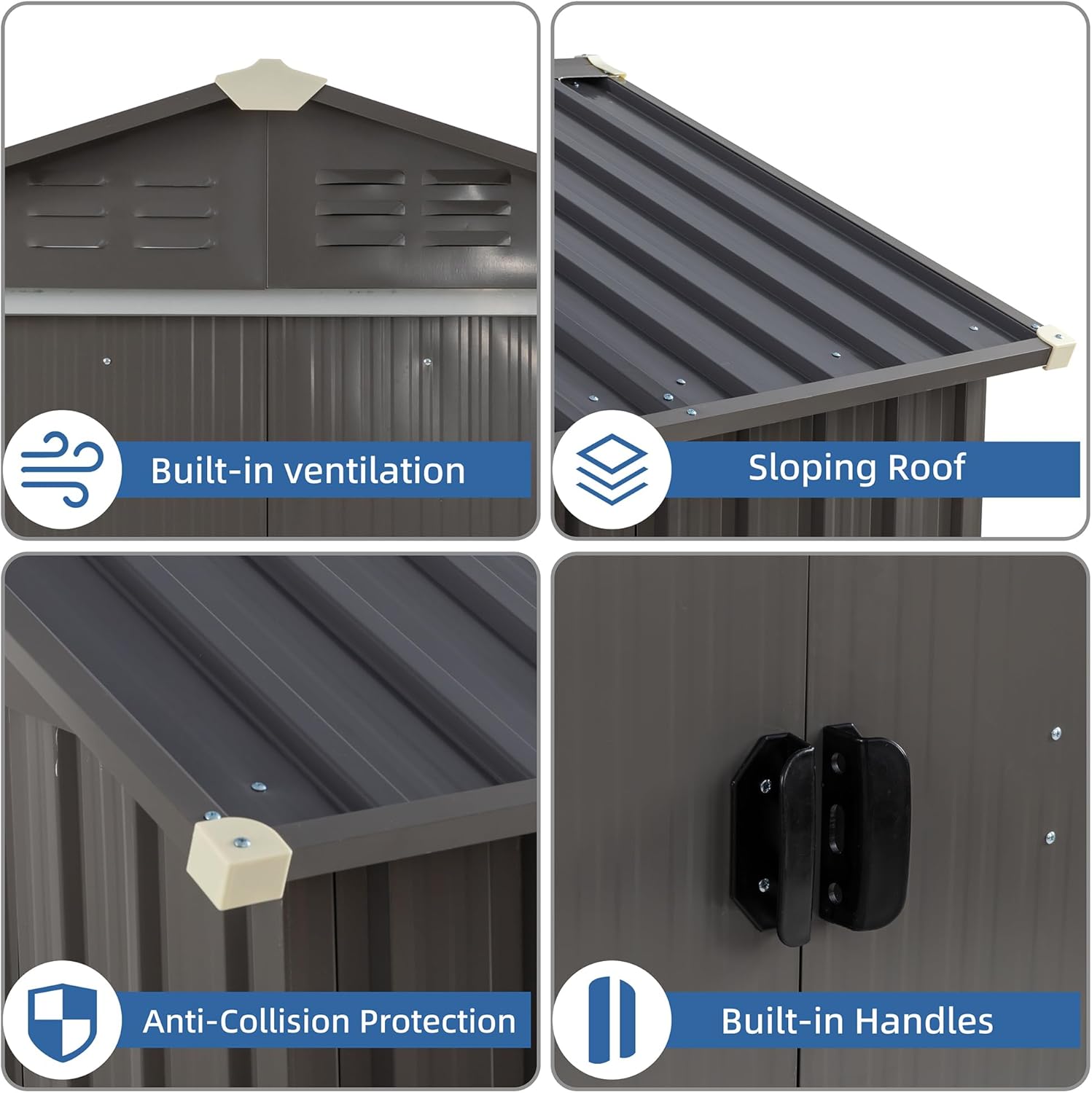 JYQAQA 6x4 FT Outdoor Garden Storage Shed,Waterproof Metal Garden Sheds with Lockable Double Door,Weather Resistant Steel Tool Storage House Shed forPatio,Lawn Gray