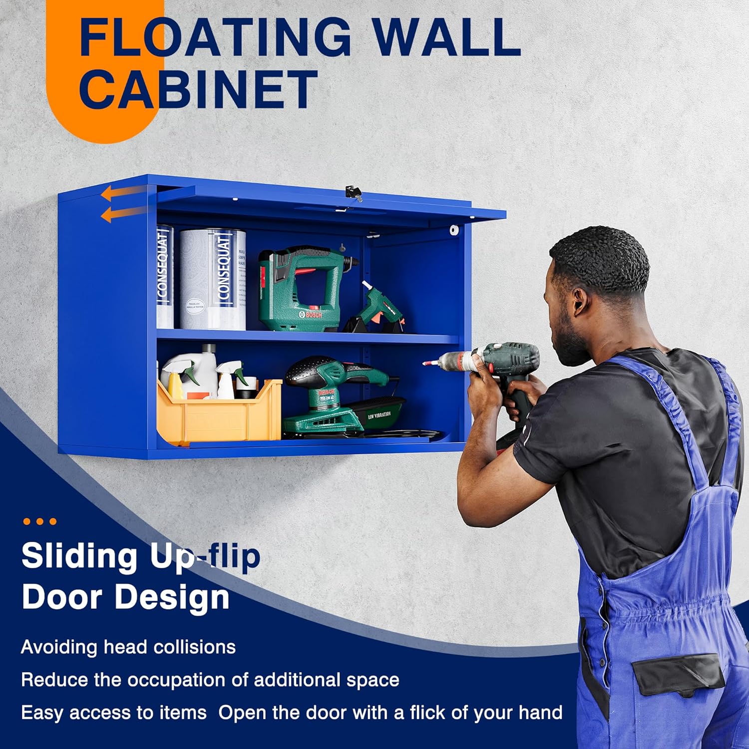 Yizosh Metal Garage Wall Cabinet with Doors and Shelves, Wall Mounted Metal Storage Cabinet, Floating Garage Tool Cabinet for Garage, Basement, Kitchen, Warehouse (Blue, 21.6" H)