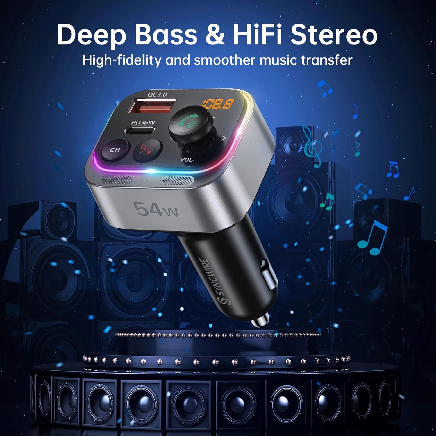 - Special Feature : Fast Charging 54W Max, Safe Efficient Charging Dual Ports, Light Switch Design, Dual Mics for Noise Suppression & Hands-free Calls, Powerful HiFi Deep Bass, Upgraded Bluetooth V5.3 Connectivity FM Transmitter, Wider Range Compatibility for Most Smartphones and Vehicles Fast Charging 54W Max, Safe Efficient Charging Dual Ports, Light Switch Design, Dual Mics for Noise Suppression & Hands-free Calls, Powerful HiFi Deep Bass, Upgraded Bluetooth V5.3 Connectivity FM Transmitter, Wid⊠See more