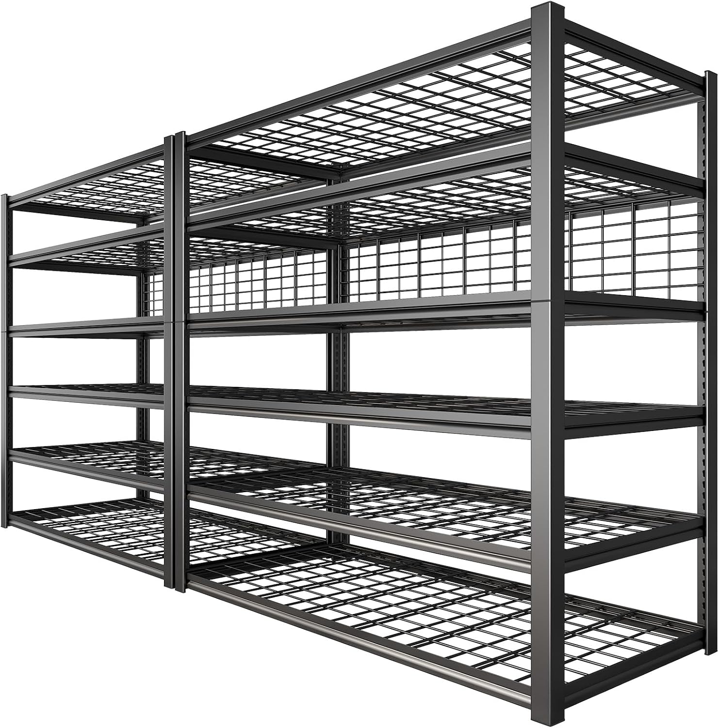 REIBII 84" H Garage Shelving, 6-Tier Storage Shelves Heavy Duty Loads 3500LBS, 48" W Adjustable Garage Shelves, Metal Shelving for Basement, Warehouse, 84" H x 48" W x 20" D, 2PC