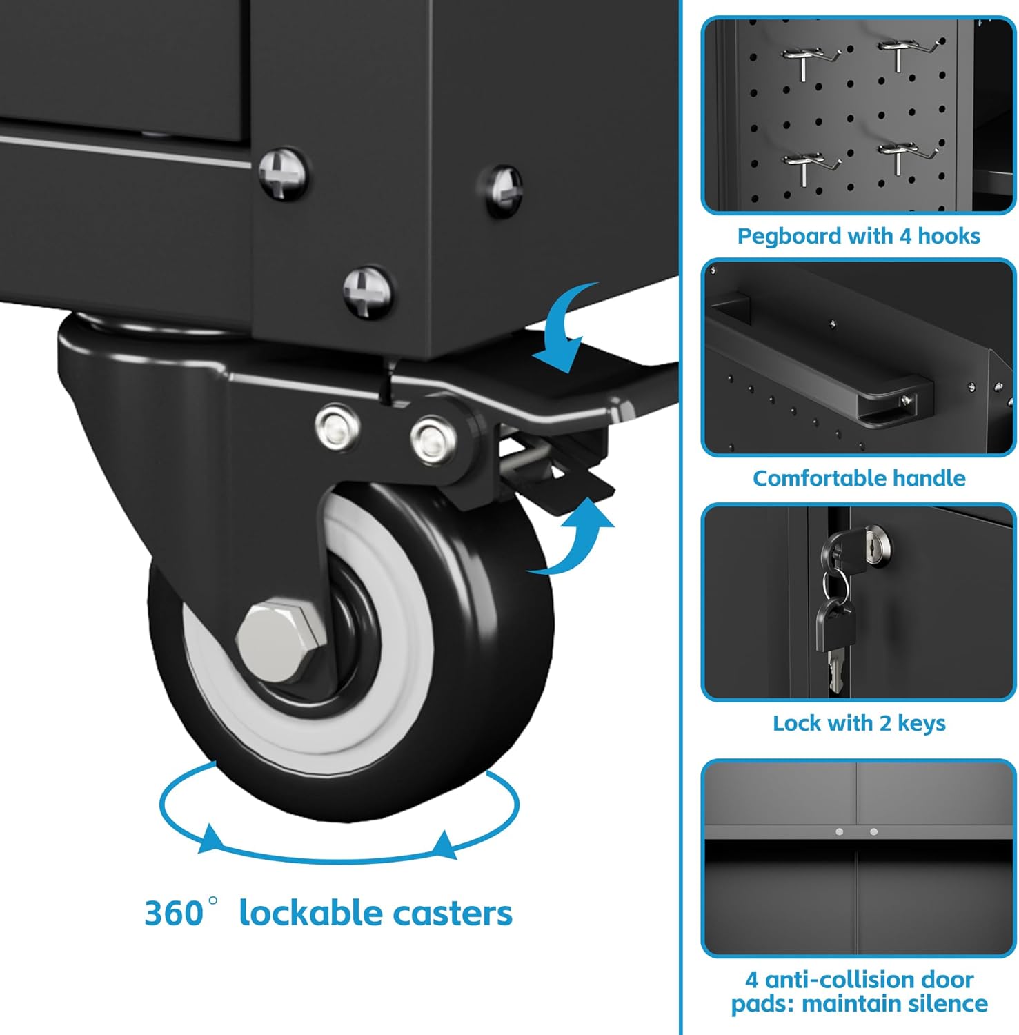 - 【High Quality Material】Rolling metal cabinets are made with 100% steel material that is designed to be reliable and suitable for all your needs,providing an effective barrier against corrosion thanks to the powder coating process.