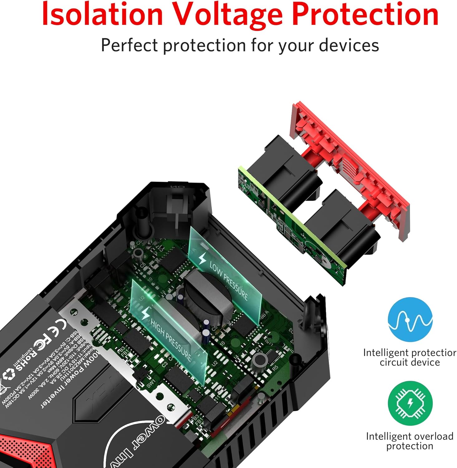 - 〖QUIETCOOLING FAN〗The smart cooling fan will automatically rotate at different speed according to power load and temperature, this design can help to reduce the fan noise.Also the high speed cooling fan protect the inverter against overheating.