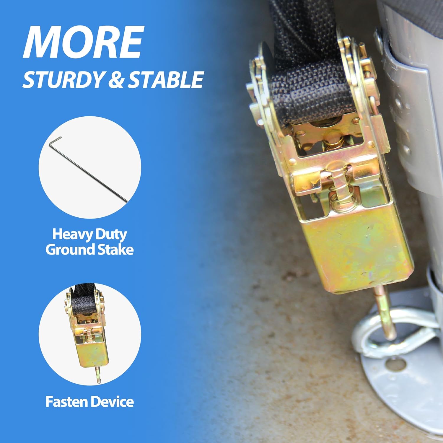 - โFor long term use and safety, please make sure to use rope, ground anchors for stability.If you want to place it on the grass for a long time, you need to pour cement around the legs and fix it with expansion screws to ensure stability. (Expansion screws need to be purchased by yourself. )