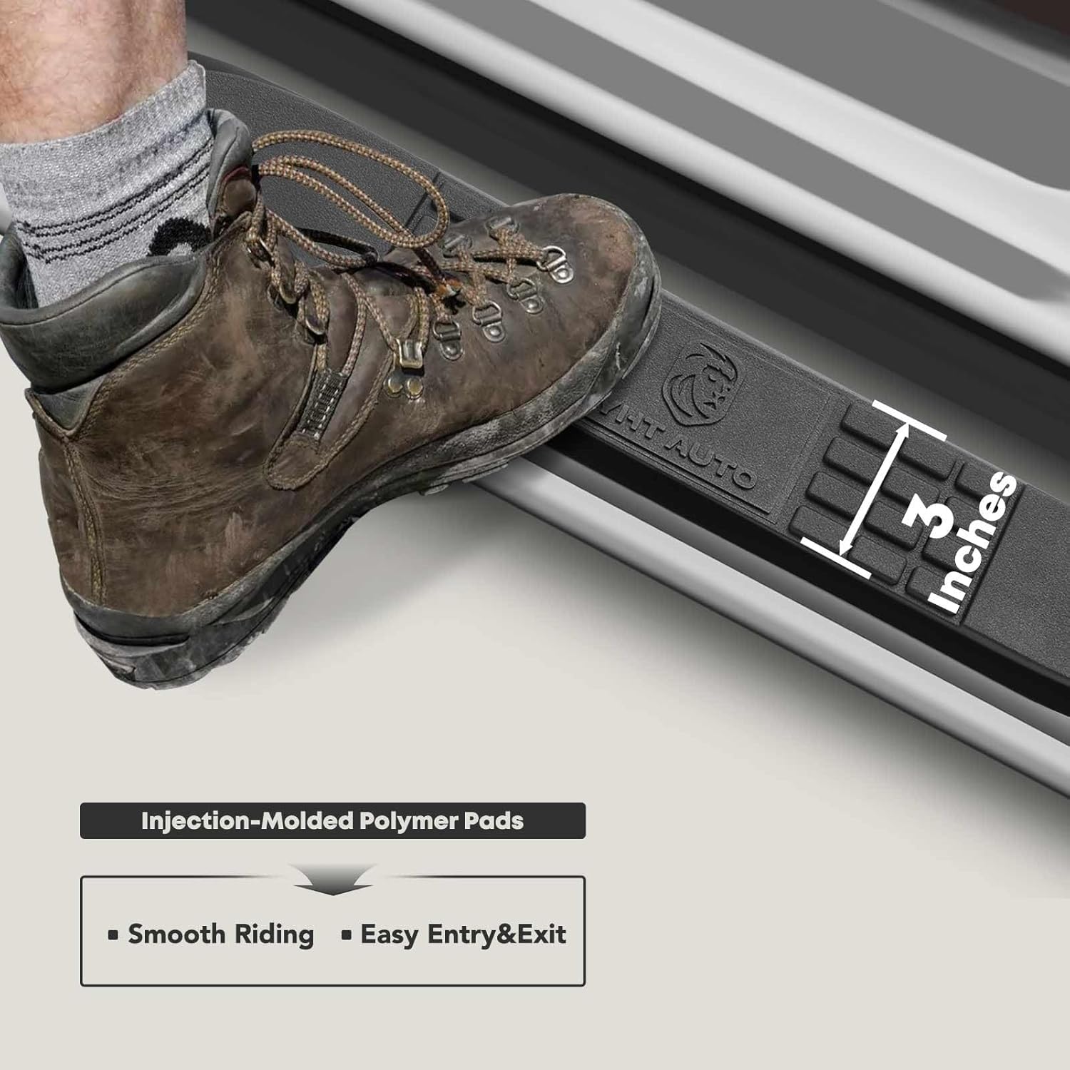 - Ultimate Comfort: The 3-inch injection-molded polymer step pads have undergone 10,000 dynamic load tests, 24 hours of static load testing, and 720 hours under the Xenon lamp aging test. These tests demonstrate minimal pedal surface drop and maintenance of structural integrity. Our sidebars are designed to preserve ground clearance