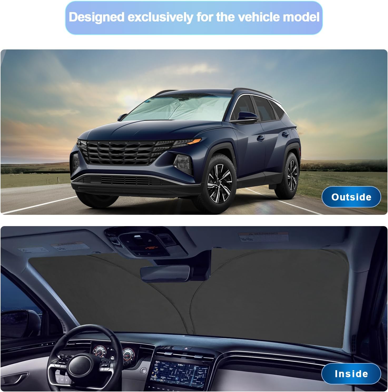 - 3.High Quality Polyester Material : this 2022 2023 2024 2025 Tucson shield sun protector has 4 layer structure, Four-layer protection to the greatest extent isolates the damage to the car body from ultraviolet rays, strong light, heat, etc.