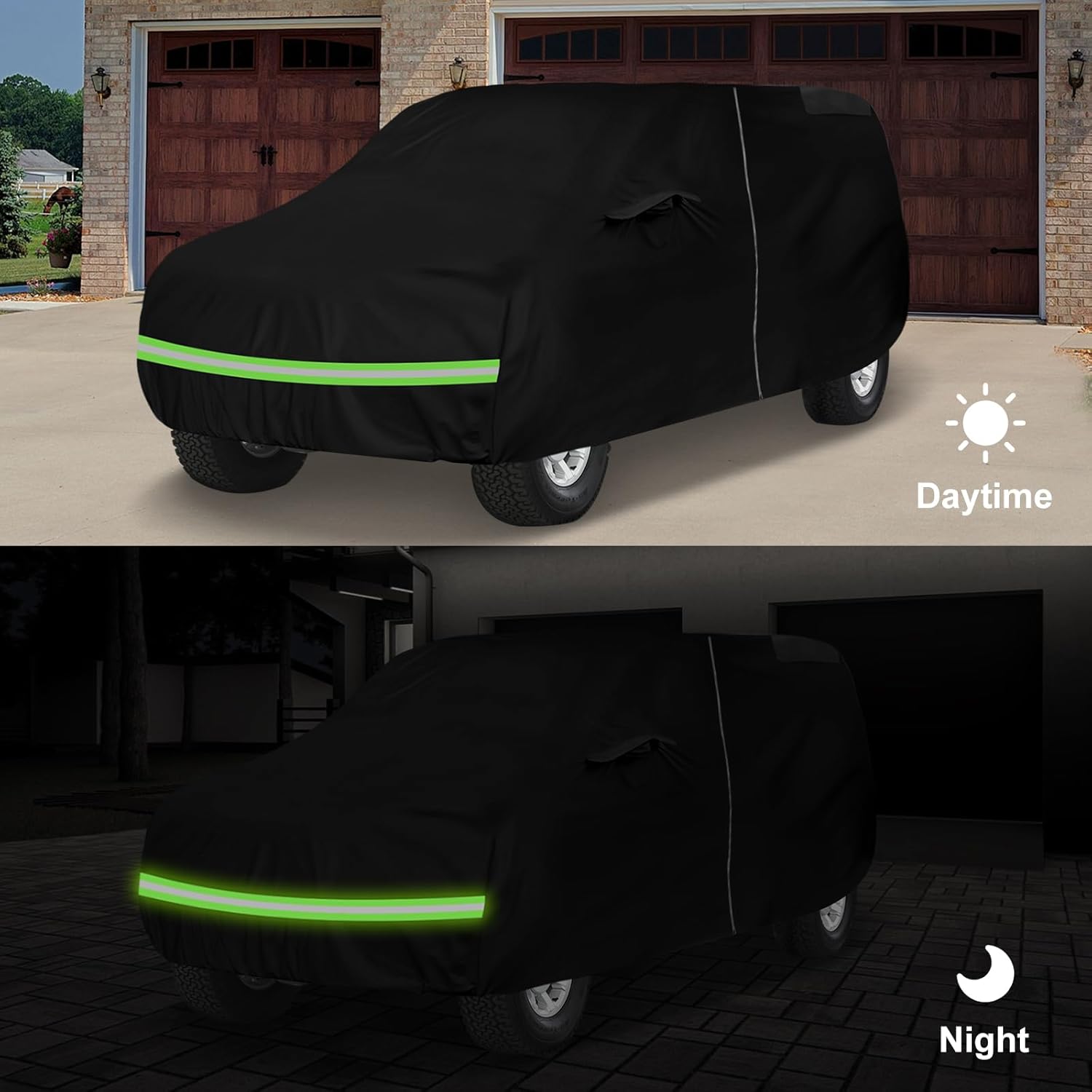- Thoughtful Design: 1: Driver side zipper design - easy in and out without taking off the cover; 2: reflection stripes - making car easily seen and avoid accidents; 3: Pretty Mirror Pockets perfectly protect your mirror form damage