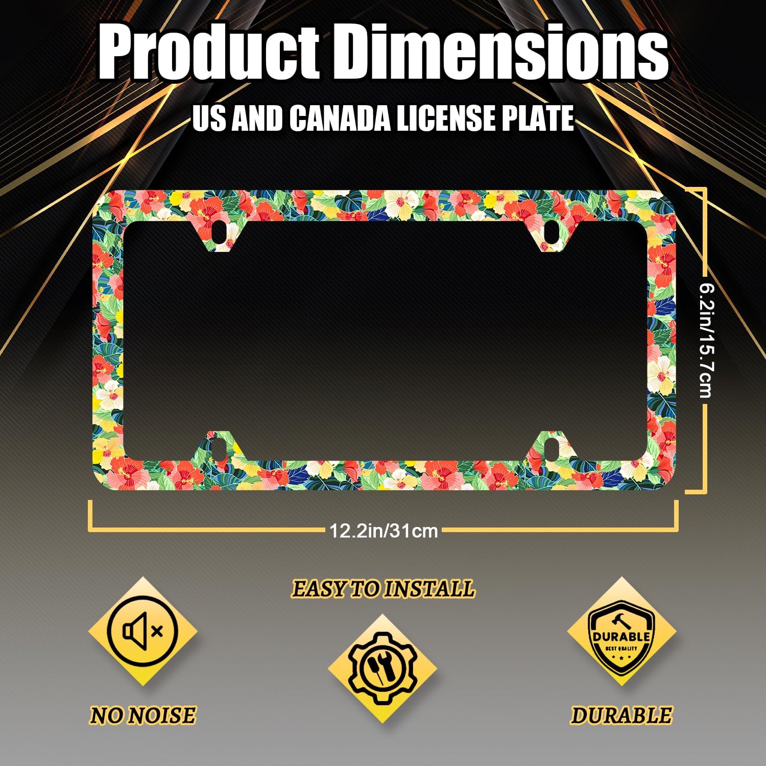 Pink Yellow Hibiscus License Plate Frame Hawaii Floral Flowers License Plate Holder Colorful License Plate for Car Decoration Stainless Steel Car Accessory with Screws Women 12.3" x 6.3"