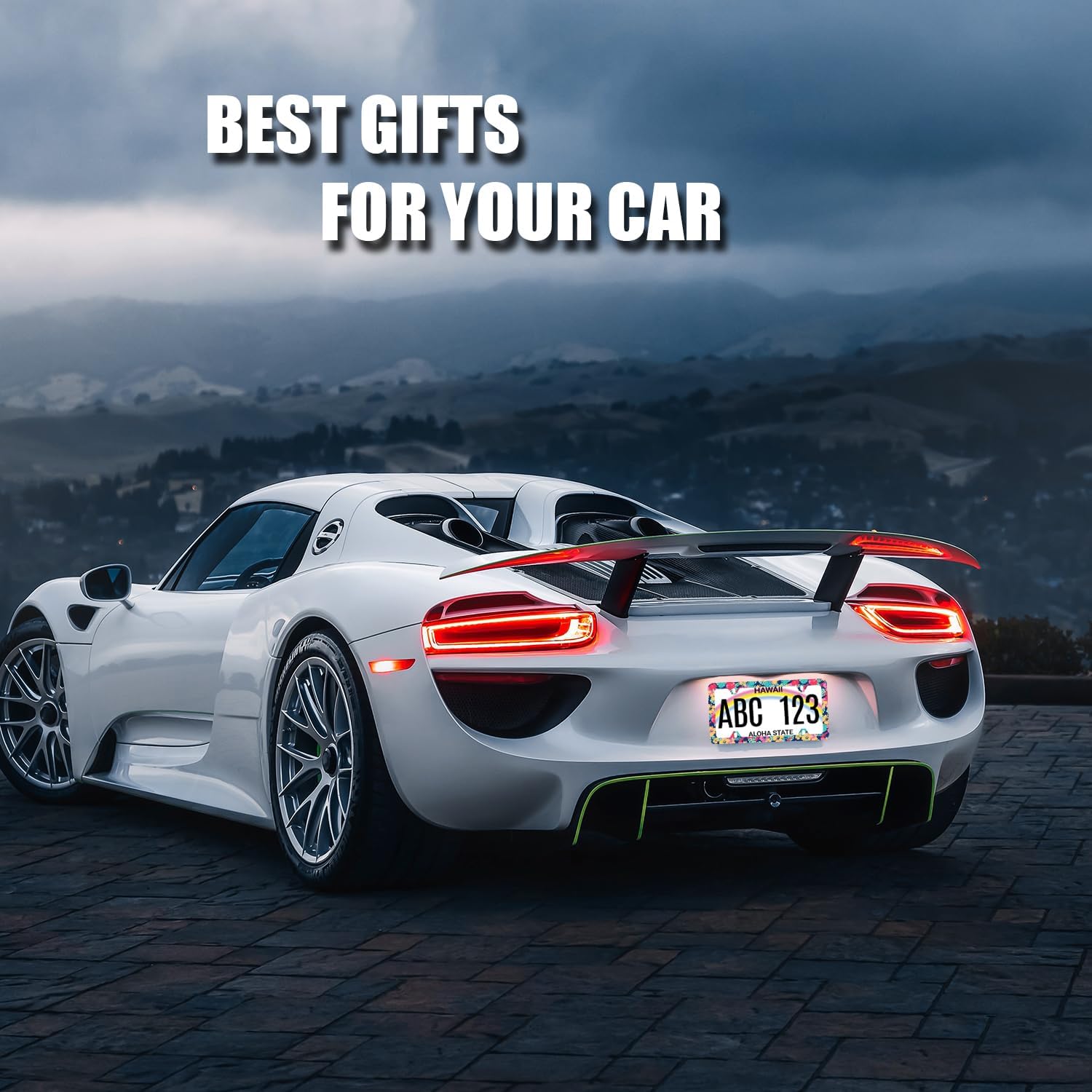 Tropical Hibiscus Flower License Plate Frame Colorful Floral Leaves License Plate Holder Funny License Plate for Car Decoration Stainless Steel Hawaii Auto Parts with Screws 12.3" x 6.3"
