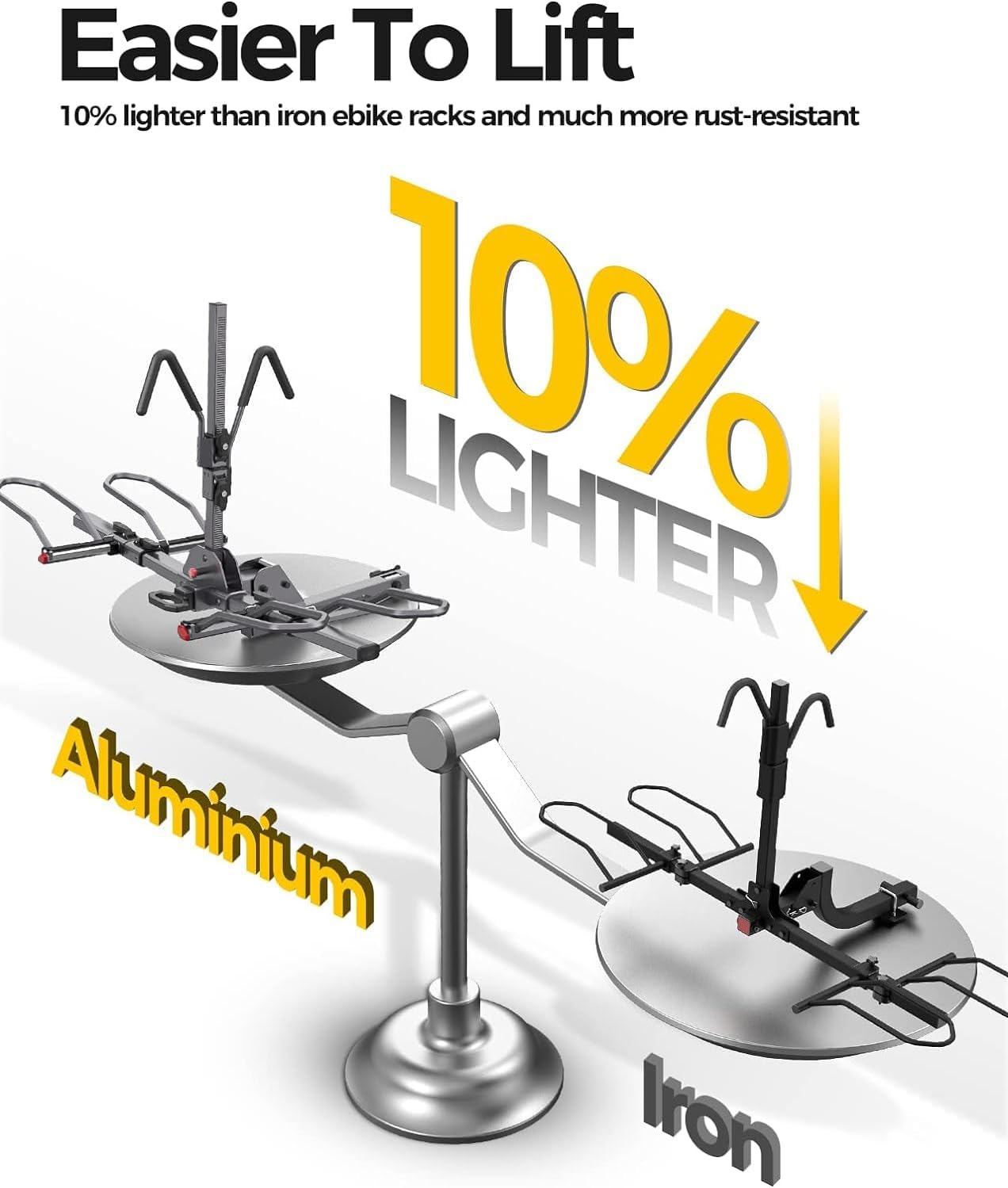 KYX 220 lb Hitch Mounted E-Bike Rack, 2-Bike Rack Platform Style for Cars Trucks SUVs Minivans, fits MTB Gravel Road Bike with Up to 5-inch Fat Tire Carrier Rack - 2" Hitch Receiver (Aluminum)