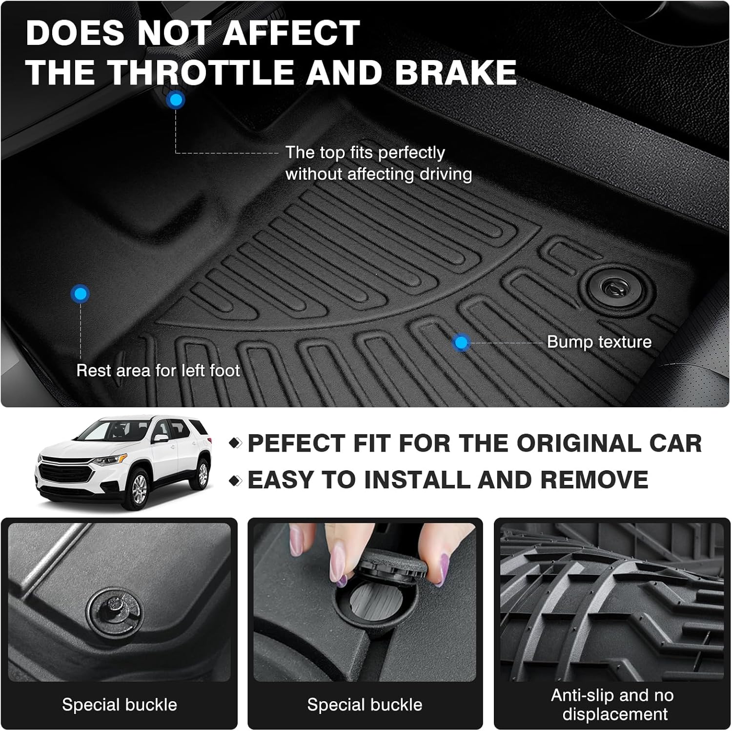 - ăCrafted for Traverse Exclusivityă Introducing premium floor mats, that seamlessly integrate with your Chevy Chevrolet Traverse 7 Seater 2018 2019 2020 2021 2022 2023 2024 2025 through precise 3D-scanned design, eliminating the need for trimming. ATTENTION: ONLY FIT with 2nd Row Bucket Seats!