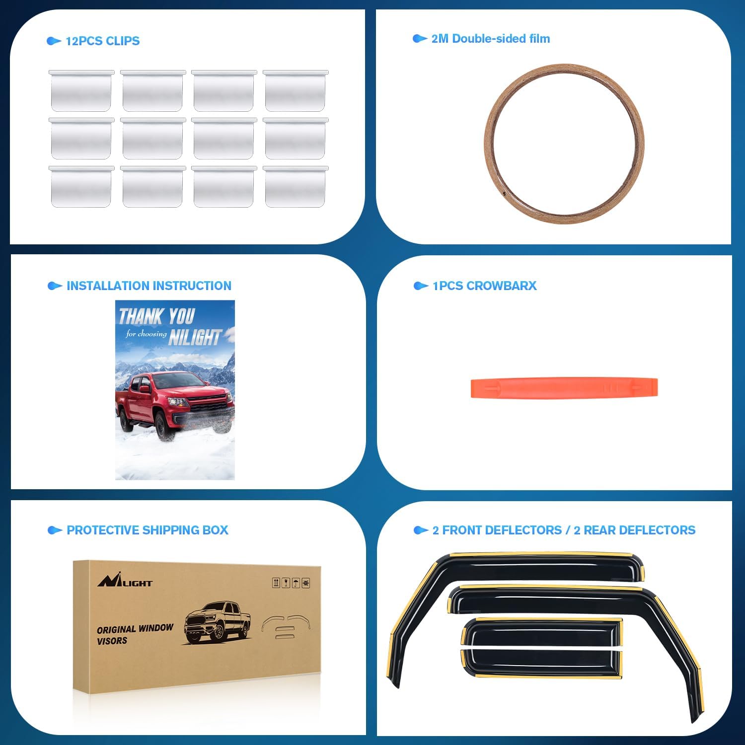 - QUICK AND EASY INSTALL: Nilight Wind Deflectors provides perfect fit for your Car. Just slip it onto your carโs window and your job is done within minutes. There is no drilling or no tools required.
