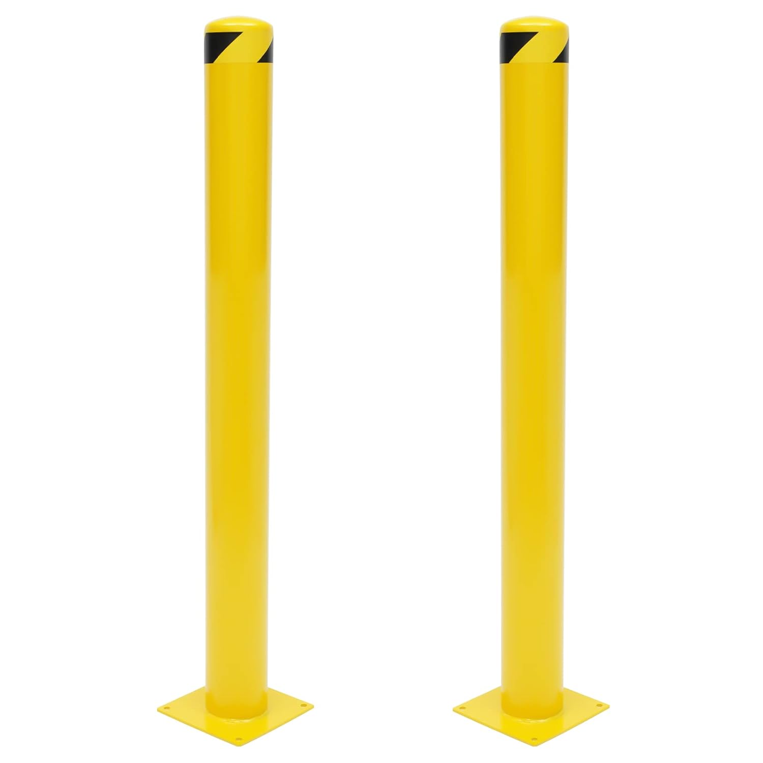 Safety Bollard Post 48'' Height Bollard Post Yellow Steel Pipe Parking Barrier with 8 Anchor Bolts for Driveway Traffic Control, Garage & Parking Lot (2, 48'' H x 4.5'' D)