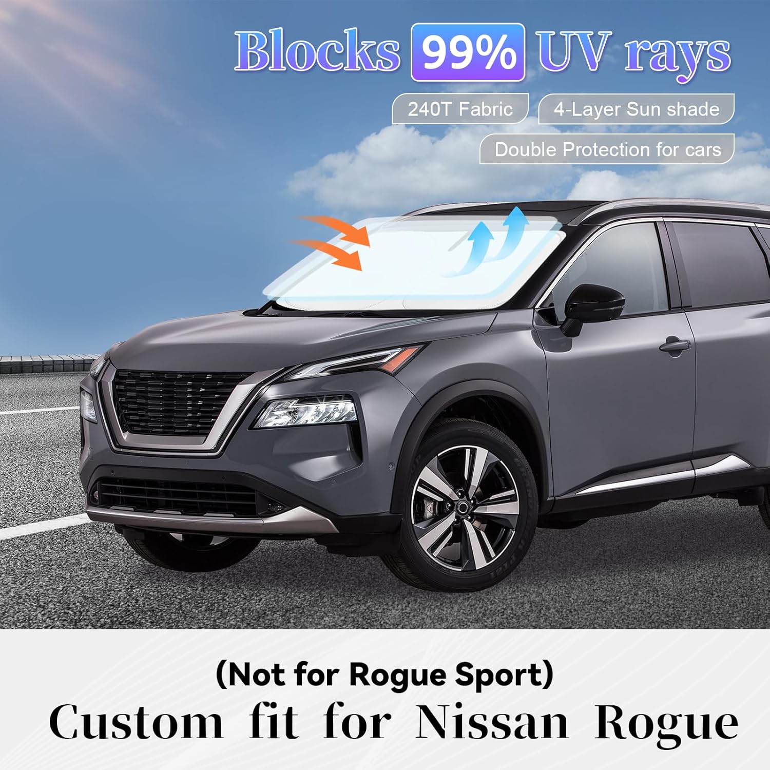 - ăVehicle Specific ăSunshade windshield Compatible with Nissan Rogue 2014 - 2020 (Not for Rogue Sport --You've spent too much time in the California and Texas sun, buy it now, Please donât waste time,reject the heat, quality products - Collapsible sun shade can be full covered on windshield and No gap. Fits like a charmïŒ