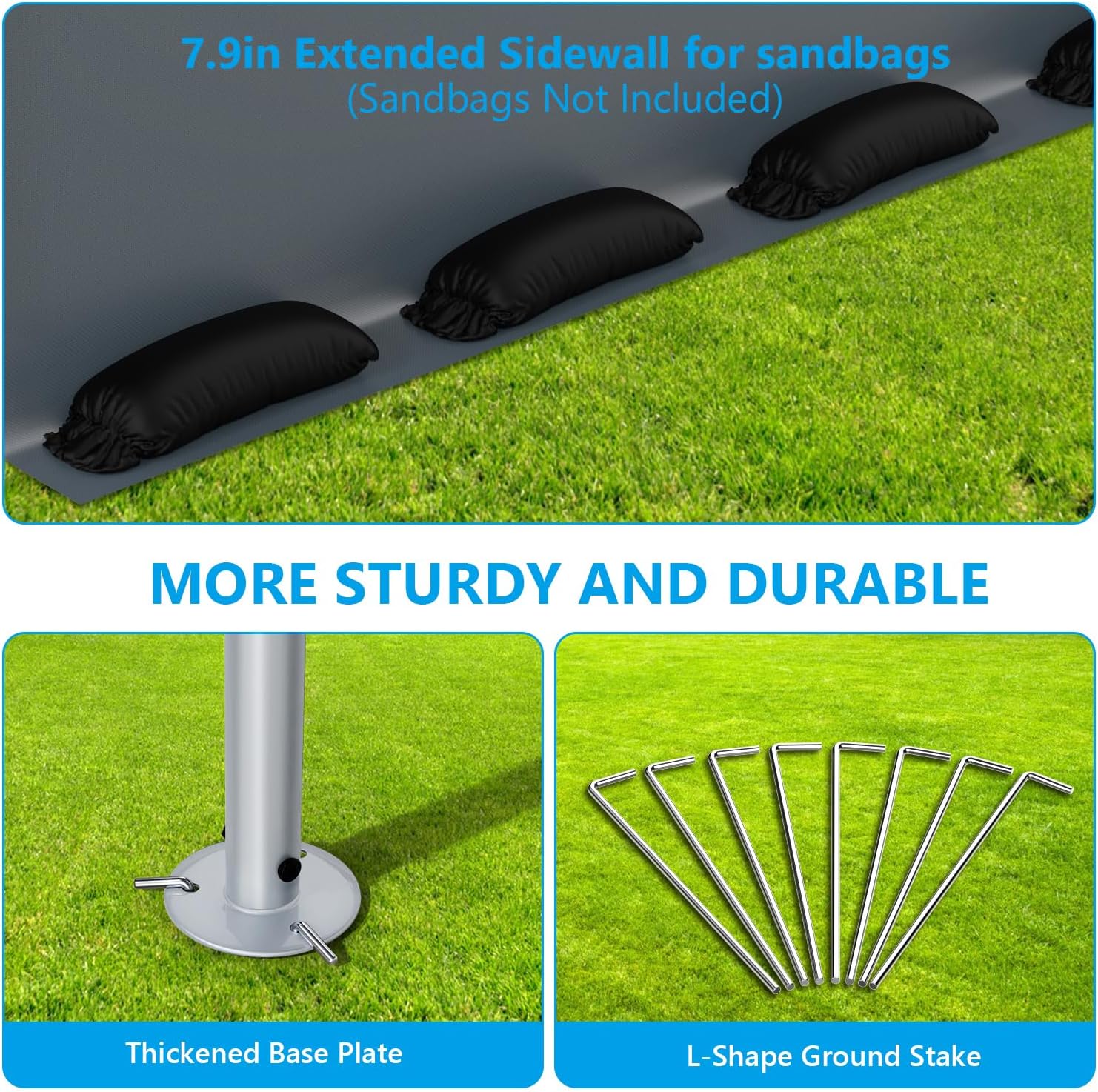 - Sturdy Steel Frame: The whole frame is made from a rust-resistant powder-coated steel frame that prevents chipping, peeling, rust, and corrosion. The solid legs are consists of 1.5inch diameter and 1.2mm Thicken poles, It makes the whole Storage Shelter Carport much safer and more stable.