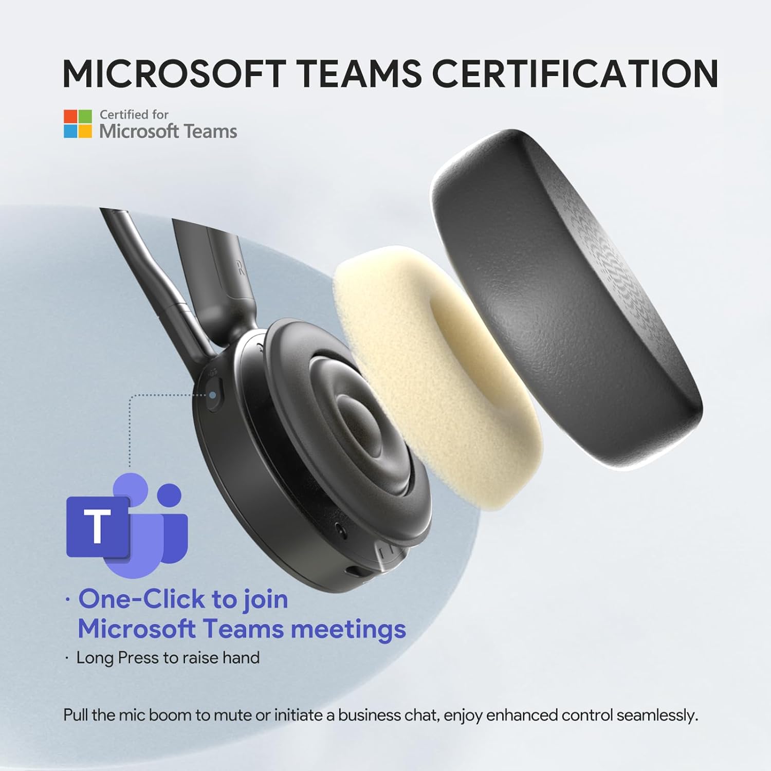- Teams Certification ▶ Yealink has always maintained close cooperation with Microsoft. This new BH70 headset has been certified by Microsoft Teams, and you can join Teams meetings with one click on the headset to ensure that you can enjoy the original experience of Teams seamlessly during your work (requires connection to PC via BT51 dongle). When users make a call or attend a meeting, the visibility indicators of the BH70 automatically glow red to reduce external interference and allow users to focus on the conversation.