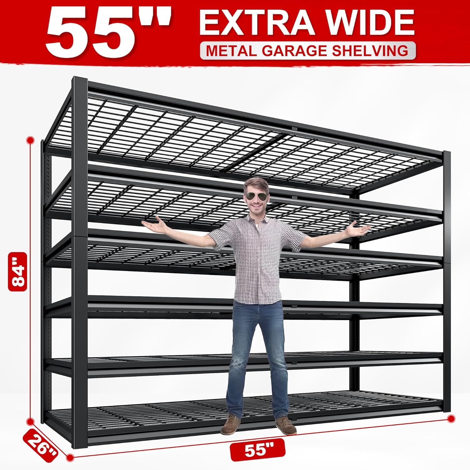 REIBII 3500LBS Garage Shelving, Adjustable Storage Shelves Heavy Duty, 6 Tier Heavy Duty Shelving, Metal Shelving Unit for Warehouse, Basement, Industrial, 55" W x 26" D x 84" H, Black