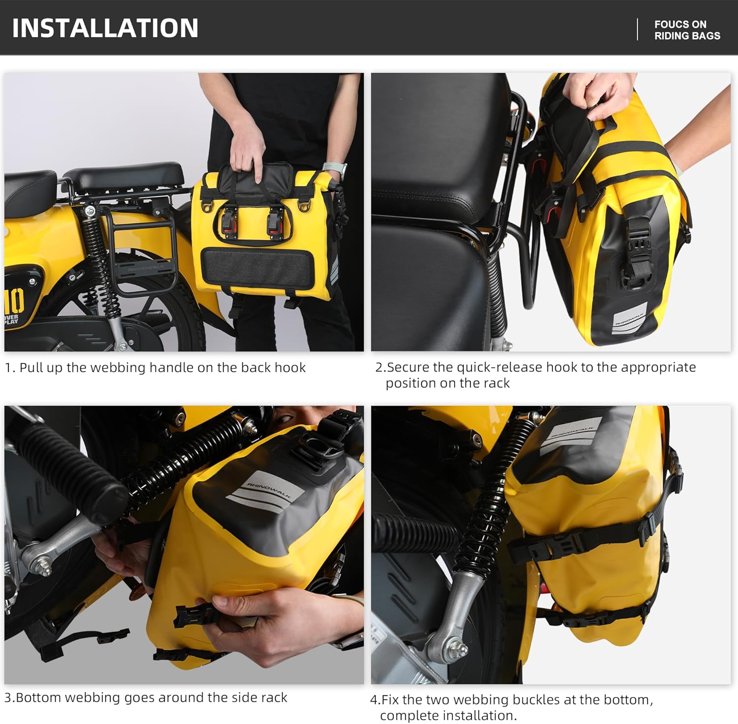 - Simple installation: Quick release hook on the back allows for quick installation on the luggage bags rack. It is generally used in motorcycles on the market, and can be installed with or without an exhaust pipe