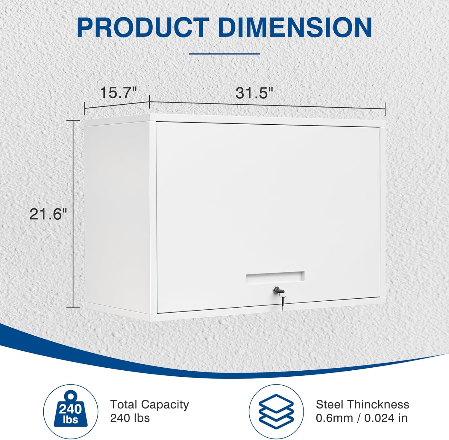 Metal Storage Cabinet White Wall Cabinets with Shelf and Locking Door - Wall Mounted Storage Cabinet for Garage Warehouse Home Office - Assembly Required