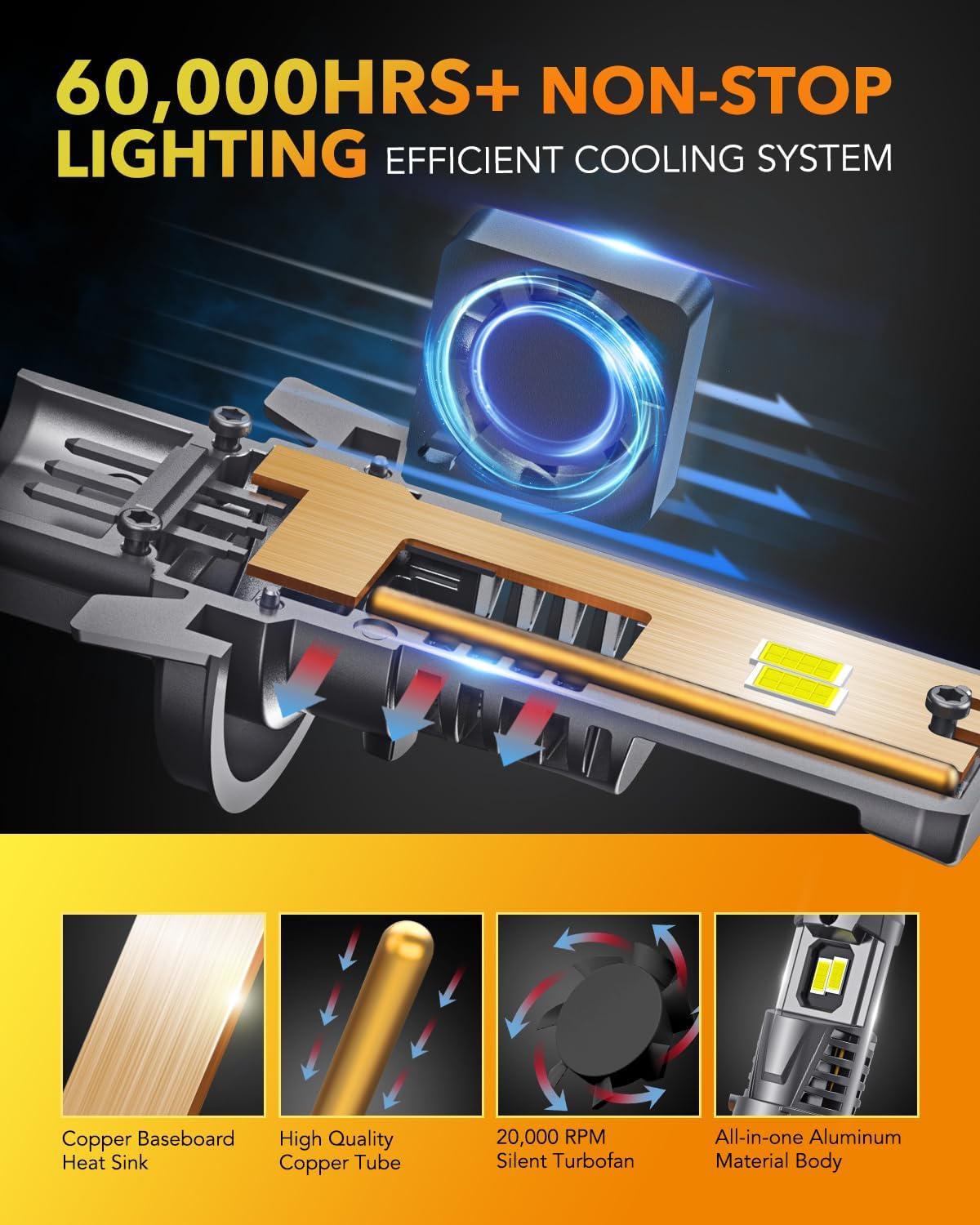 OXILAM H13 9008 Light Bulbs, 30,000LM 800% Ultra Brightness, 6,500K White Fog Bulb, 1:1 Size as Stock Bulb, Plug and Play Halogen Replacement, 2 Pack
