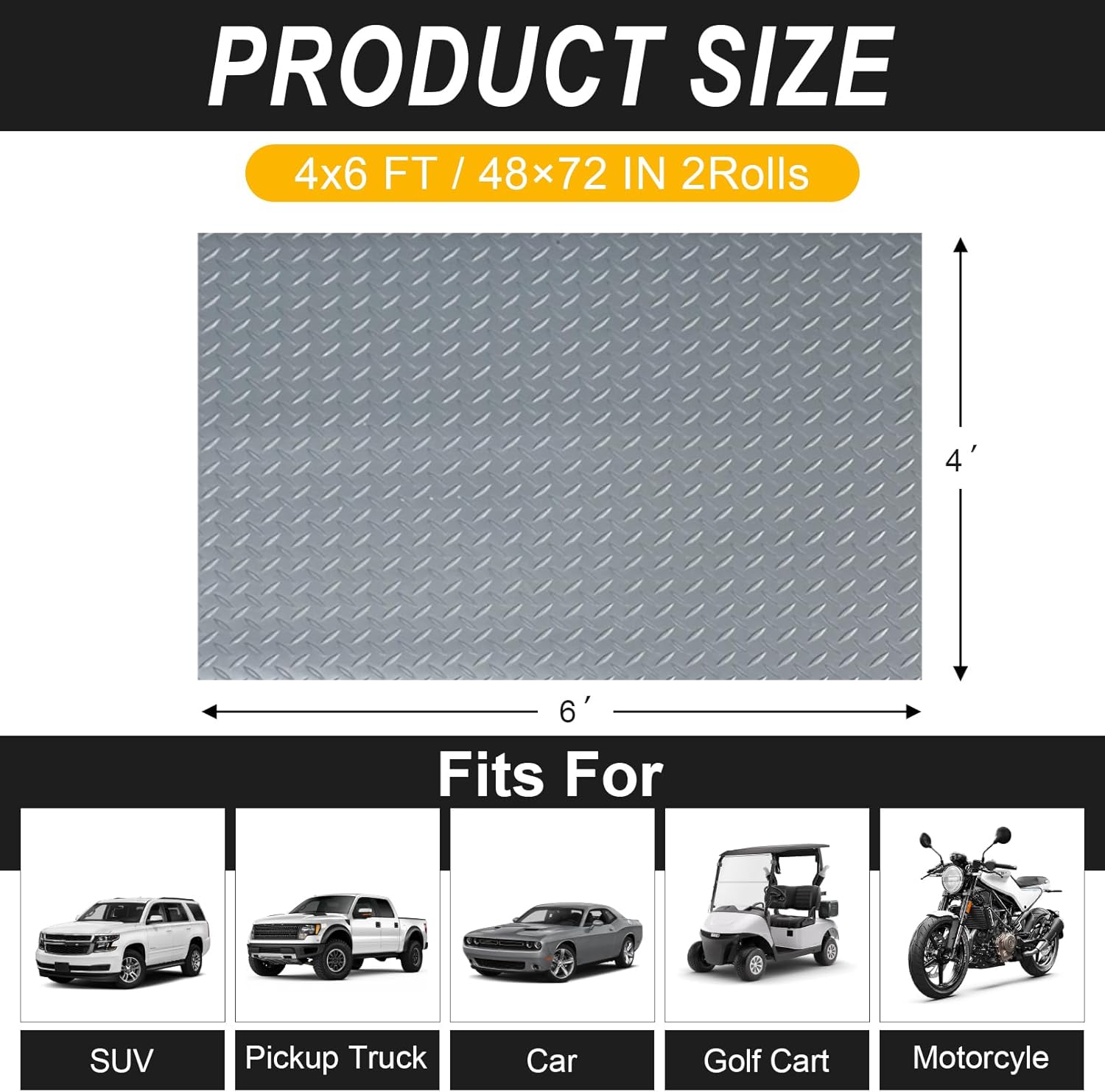 4x6 FT Garage Floor Mat, 2 Rolls 2.8mm Thickened Flooring Roll 48 sqft Diamond Plate PVC Rubber Trailer Mat, Non-Slip Floor Mat for Garage, Warehouse, Gyms, Boats, Pickup Truck, Gray
