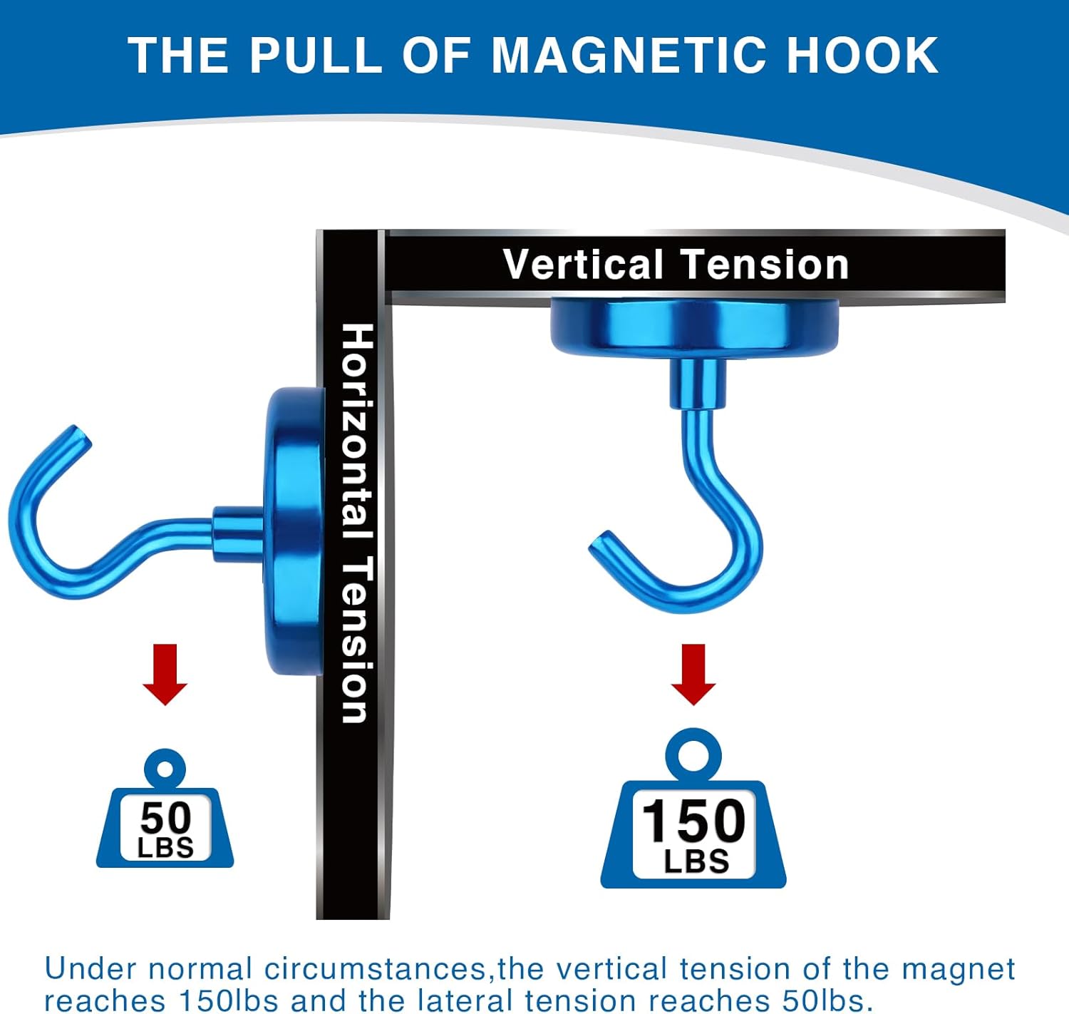 LOVIMAG Cruise Essentials, 150Lbs Cruise Door Magnets, Blue Magnet Hooks for Cruise Cabin Strong Magnetic Hooks for Hanging, Refrigerator, Celling -6 Pack