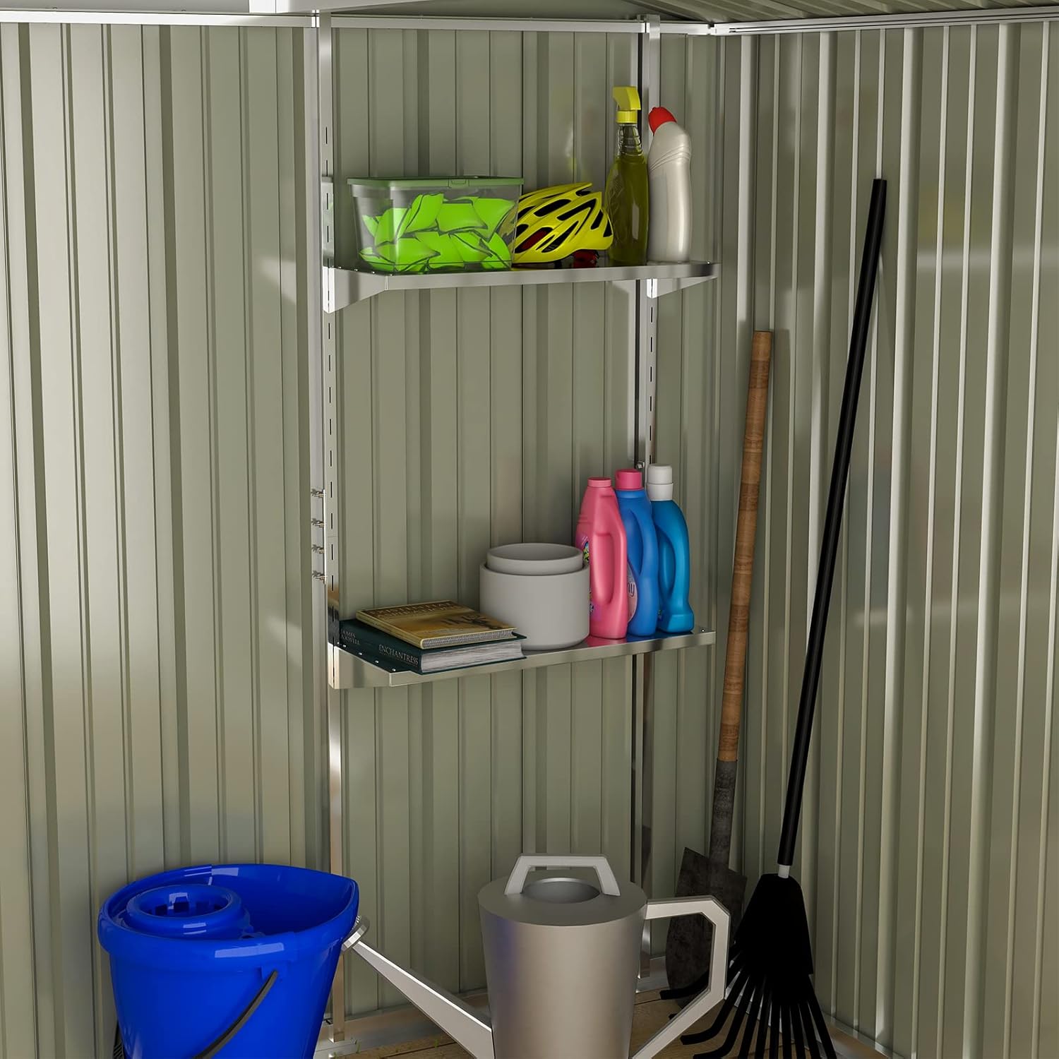 - 【Modern Design】The sleek metal exterior not only adds a contemporary touch to your outdoor space but also complements your surroundings, enhancing the aesthetic appeal of your property. Storage racks also enhance the overall aesthetics of your tool shed by creating a clean look.