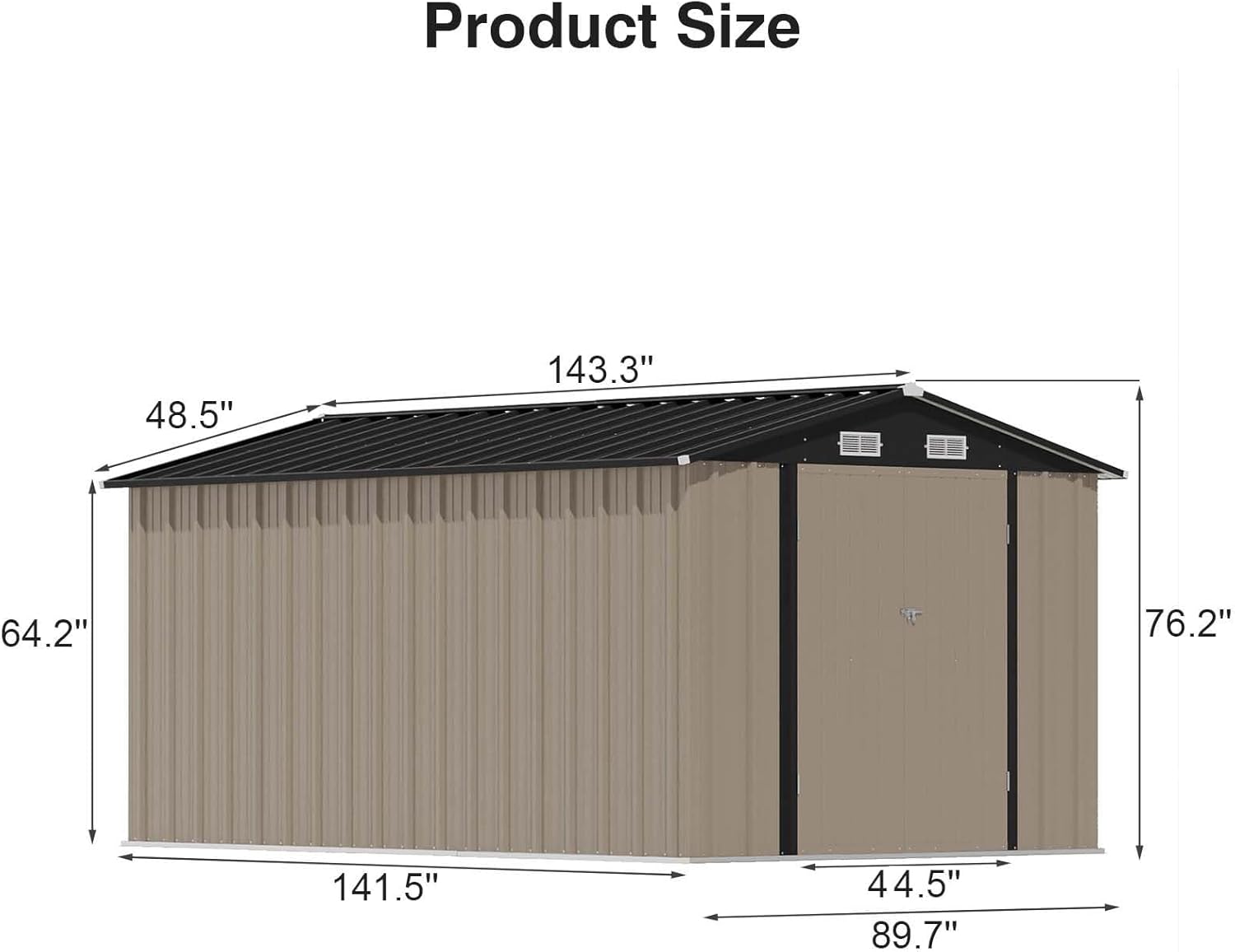 Patiowell 12 x 8 FT Outdoor Storage Shed, Steel Shed Storage House with Design of Lockable Doors, Utility and Tool Storage for Garden, Patio, Backyard, Outside use, Brown