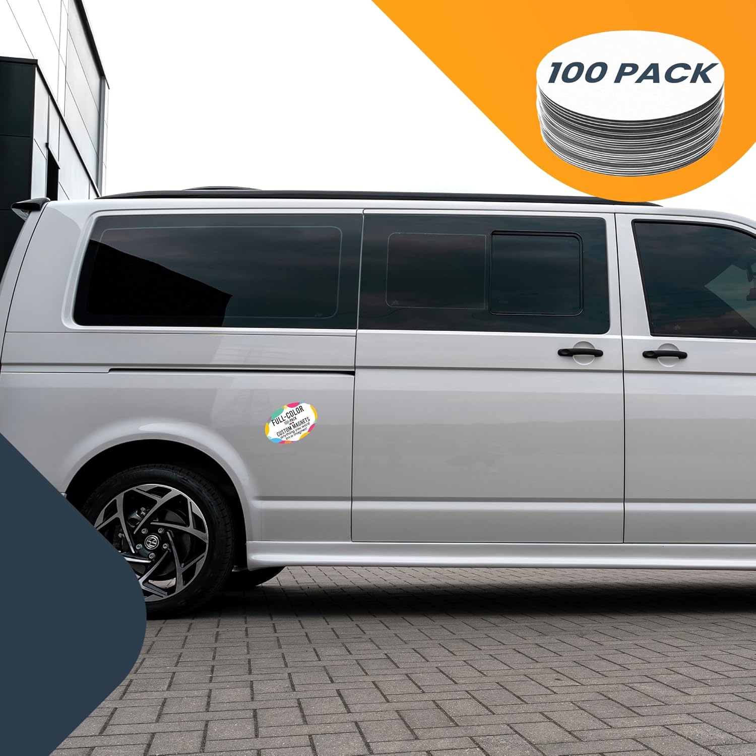- Choose your size; choose your magnet standard size from the dropdown menu to achieve the exact look you desire for your vehicle. Available sizes: 10x3 Inch (1 count) 8x3 Inch (1 count), 5 Inch Round (1 count, 25,50, 100 pcs), 6 inch Round (1 count), 5 Inch Pawprint (1 count), 4x6 Inches Oval (1 count),3.5x2 (25 pcs), 3.5x2 (50 pcs), 3.5x2 (100 pcs), 2x7 dog bone