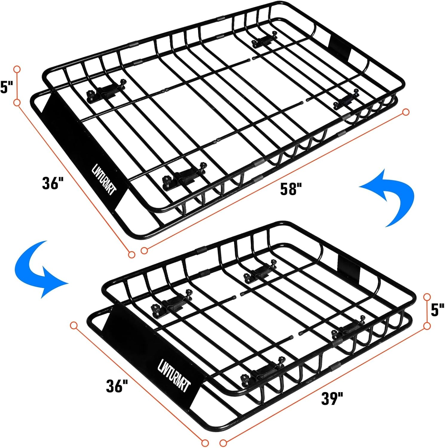 - 【Rack Structure】:This roof rack cargo carrier is a heavy-duty full welding point steel construction with a durable black powder coating, has long-lasting corrosion resistance.Load capacity can reach 300LBS.