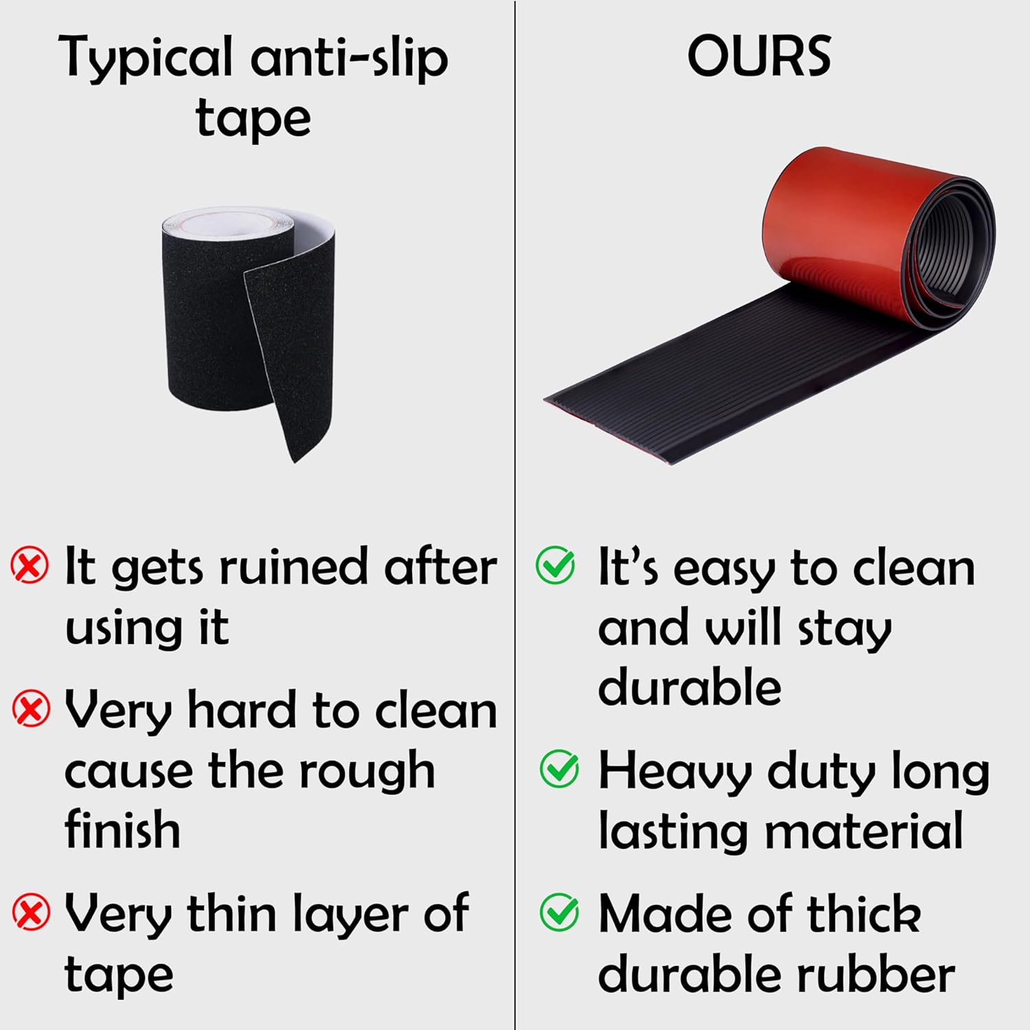 - DURABLE HEAVY-DUTY RUBBER MATERIAL β Our outdoor step treads grip tape is made of heavy-duty thick rubber material and is exceptionally durable. It prevents curling, tearing, wrinkling, or lifting even under the rigors of heavy foot traffic.