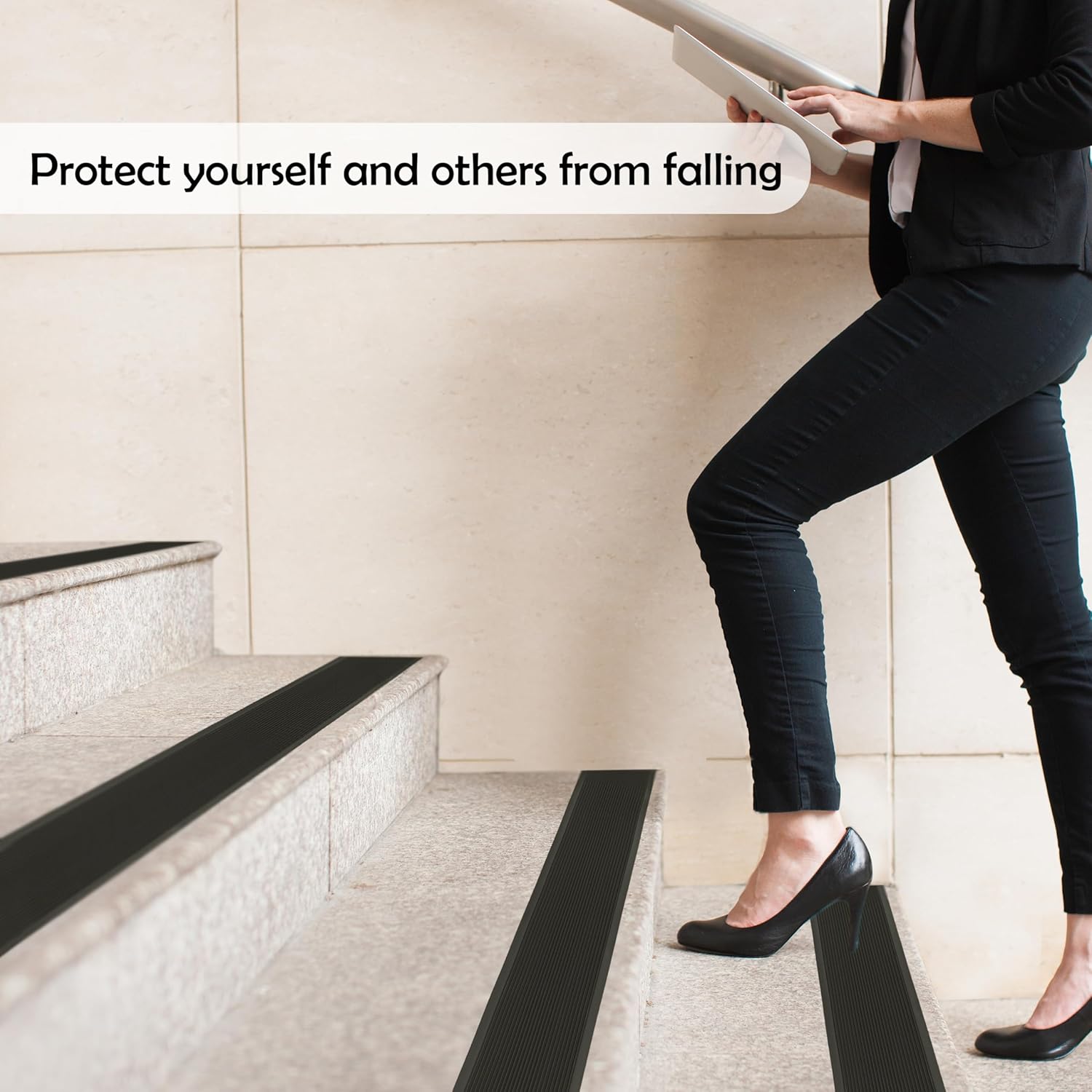 Rubber Bond 4x36in Anti Slip Stair Treads (15-Pack) - Waterproof Outdoor/Indoor Heavy Duty Non-Skid Tape for Stairs - Adhesive Rubber Grip Strips for Steps & Ramps - Black
