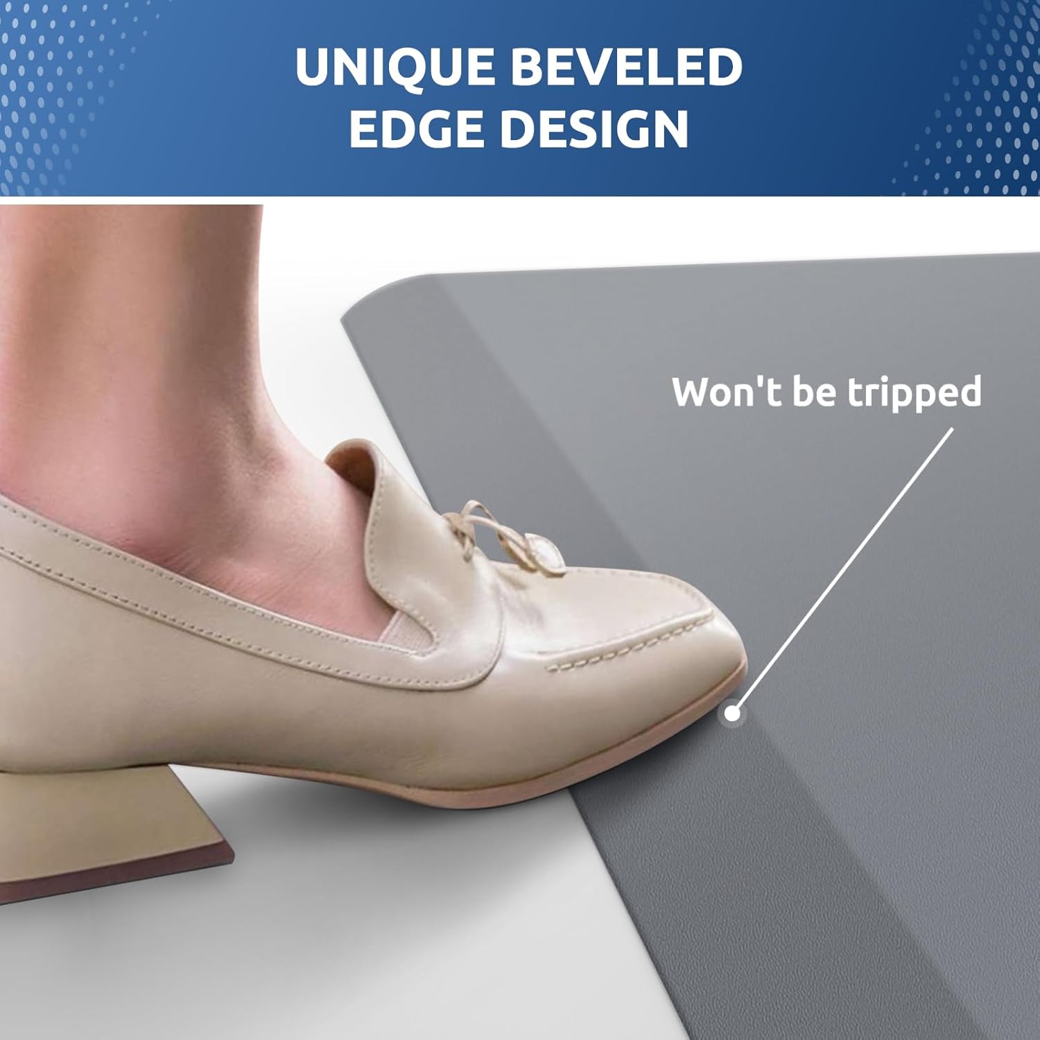 - Safety Design: The diamond-shaped design on the bottom of anti fatigue mats keeps the mat in place and prevents slippage. The bevel edge reduces the risk of tripping on the mat.