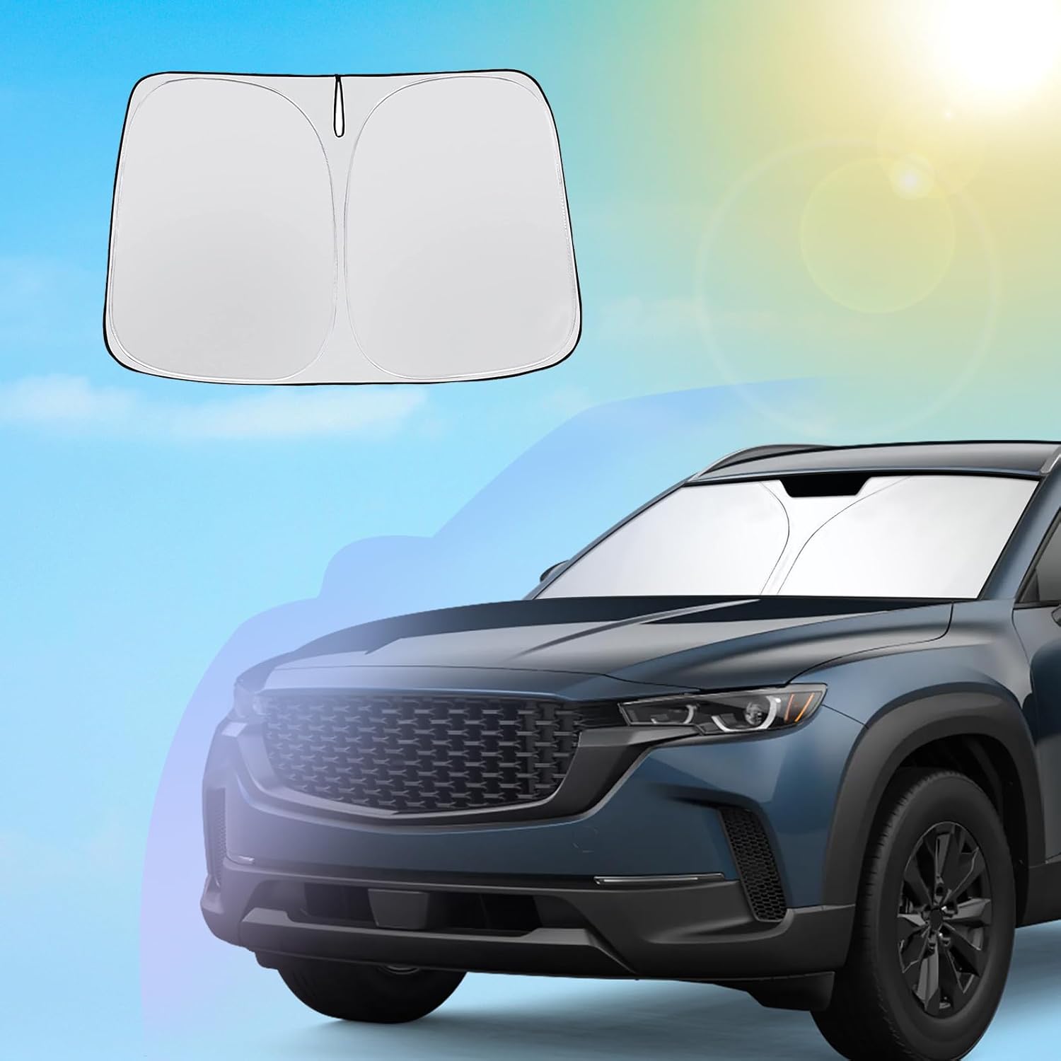 - 1.Custom Fit: this windshield sun shade is custom designed for 2023 2024 2025 Mazda CX50 sunshade for 2023 2024 2025 Mazda CX50 S Select, S Preferred/Premium/Premium Plus/Turbo/Meridian Edition/Turbo Premium Accessories front window. [Not for 2024 2025 CX50 Turbo Premium Plus] You don’t need to worry about oversize or too small,consider it if you need a car protector cover that protects your car interior from sunburn.