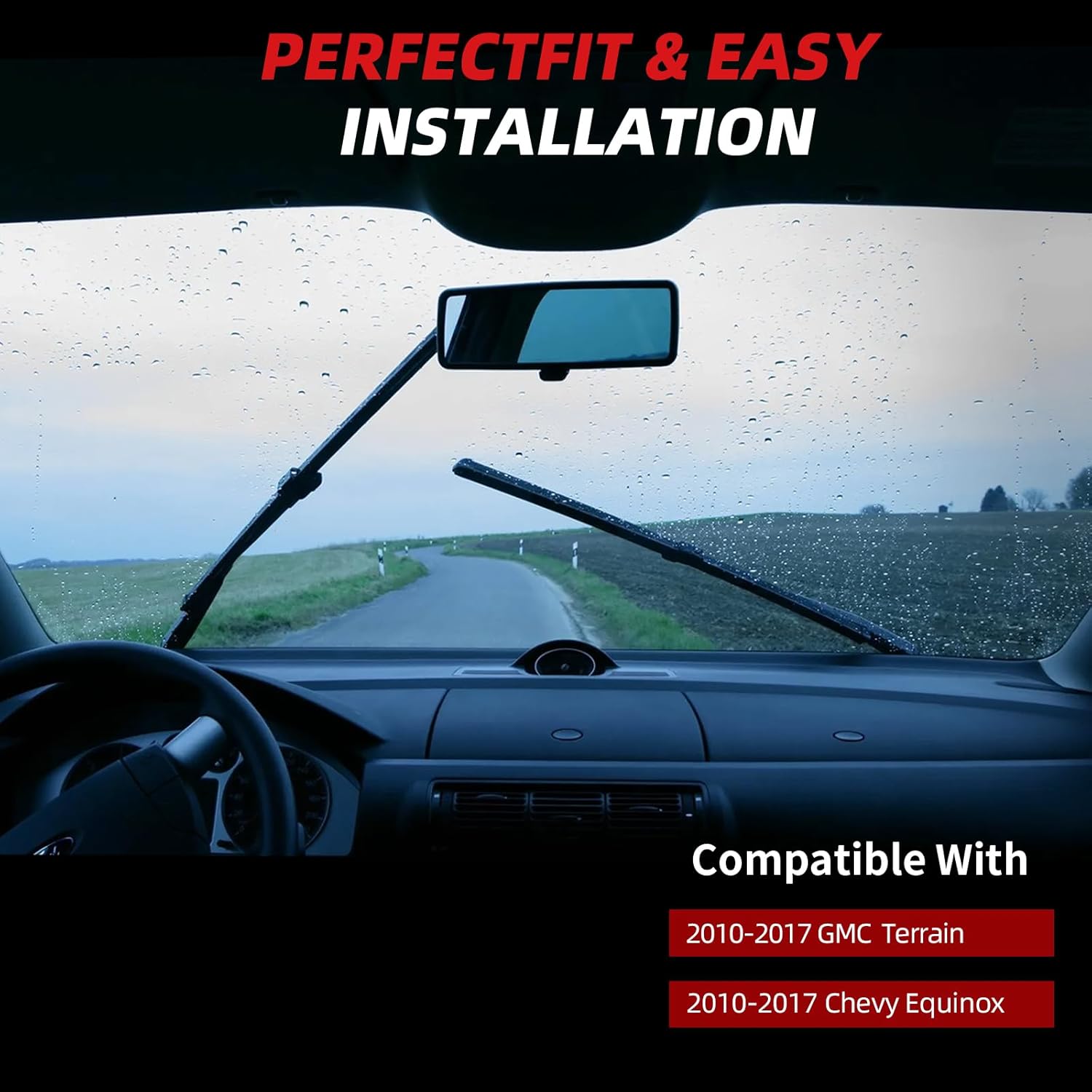 - [24"+17"+13" Perfect Fitment]: Replacement for Chevy Equinox 2010-2017, GMC Terrain 2010-2017. Our windshield wiper blades are engineered to provide a perfect fit for vehicle models, ensuring optimal performance and coverage