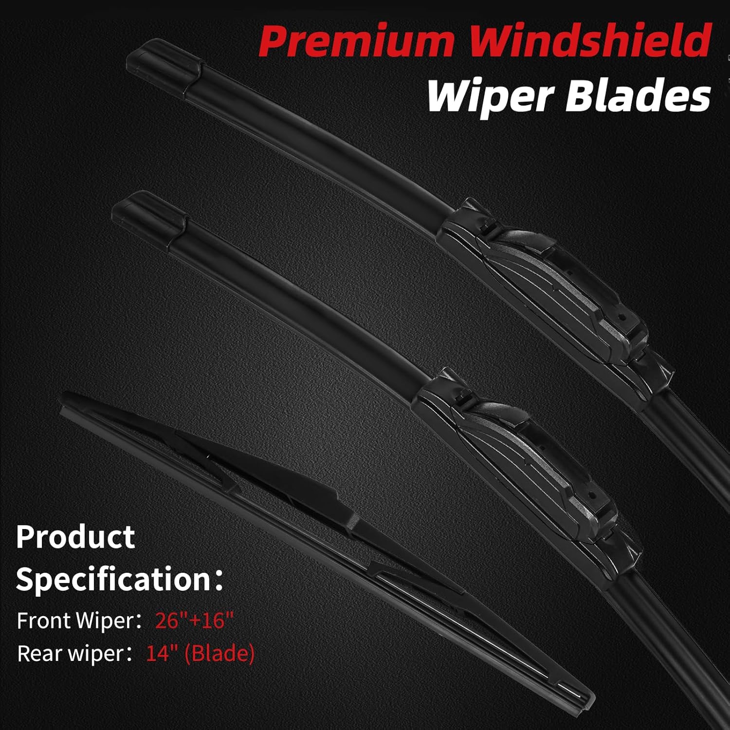 OTUAYAUTO Premium Windshield Wiper Blades - Replacement for Hyundai Tucson 16-20, Mazda CX7 07-12 - Precision Fit, All-Weather Performance, Front and Rear Wiper Blades, U Hook - 26"+16"+14" (Pack 3)