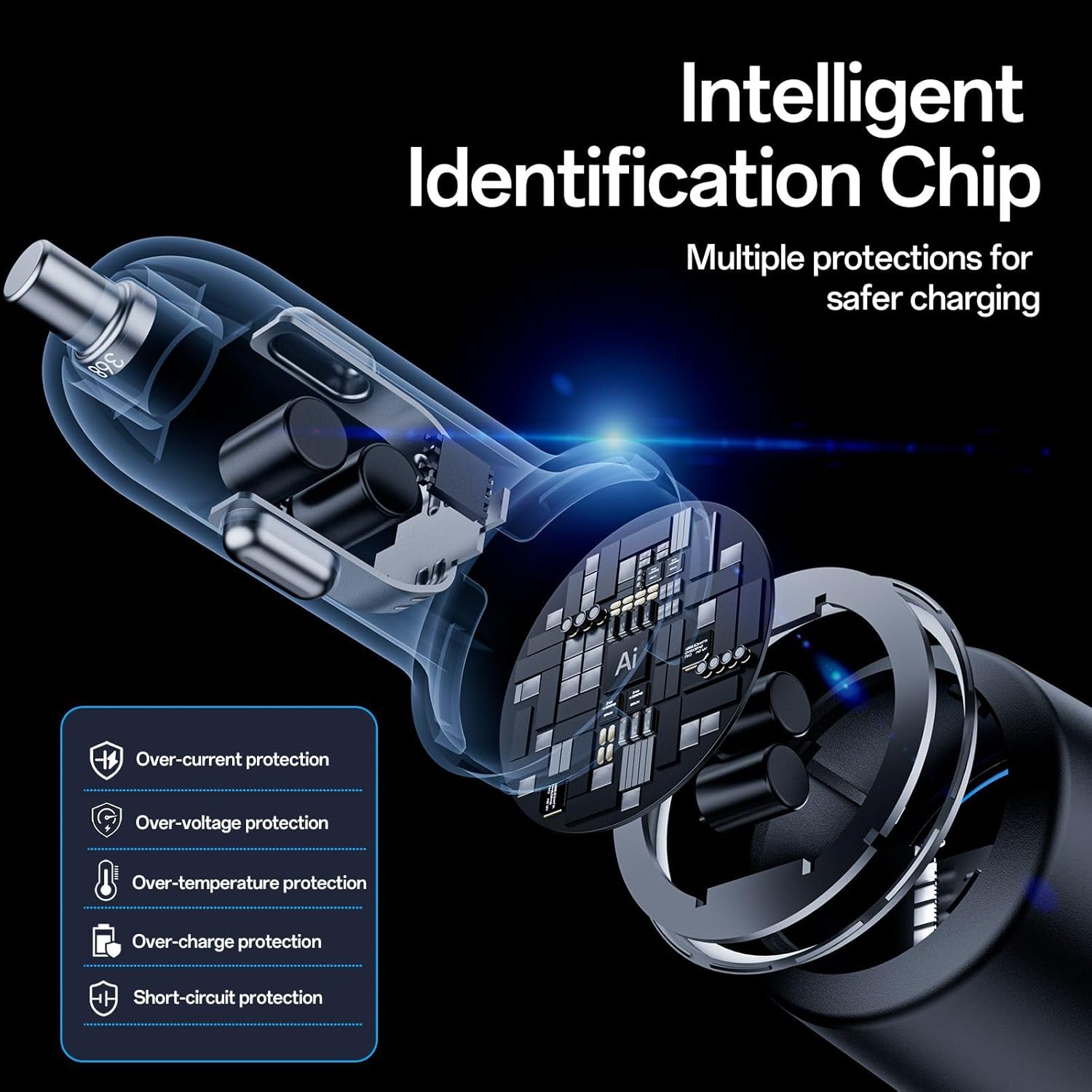 - ăExcellent Heat Dissipation & Safety Car ChargerăNew heat dissipation process, low temperature charging without burning. With over-current, over-voltage, over-temperature and other protection, safety protection equipment. Intelligent start trickle mode, mobile phones do not overcharge, battery healthier.