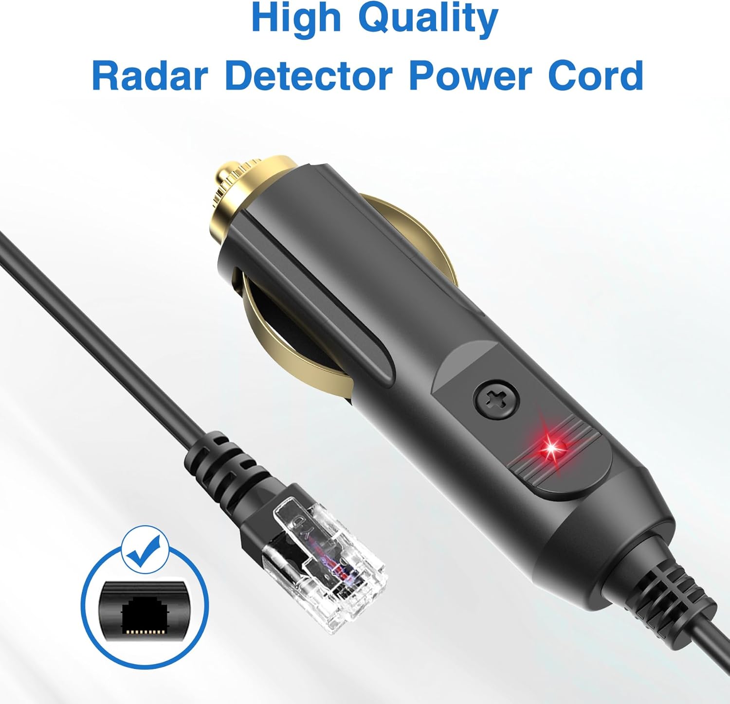 - ✅【Radar Detector Adapter Cable】:Radar detector pass-through power cord can power a 12V radar detector with a phone-type jack. RJ11 radar detector cable compatible with Escort, Beltronics etc radar detectors.(This replacement power cord doesn’t have alert function or mute button. It is only used to power up the radar detector)