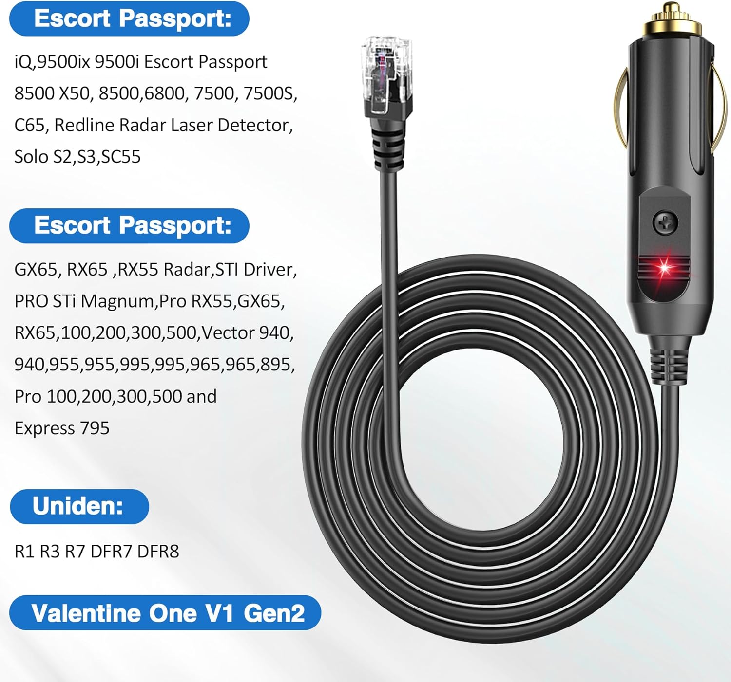 - ✅【Compatible】RJ11-radar detector power cable compatible with - Escort radar detectors, Passport radar detectors, R7 radar detector, Escort Redline 360c radar detector, escort passport 9500ix, escort max 3, escort ixc, escort solo series, Beltronics Radar Detector Beltronics Vector Pro Sti Escort Max 360c 360 3 ixc, Passport 8500 9500ix Solo X80 S3 S2 redline radar detectors.